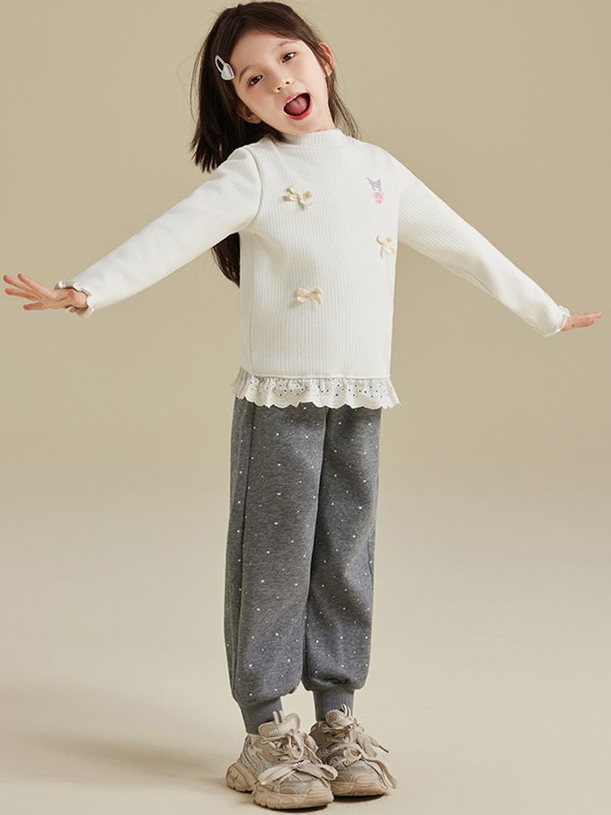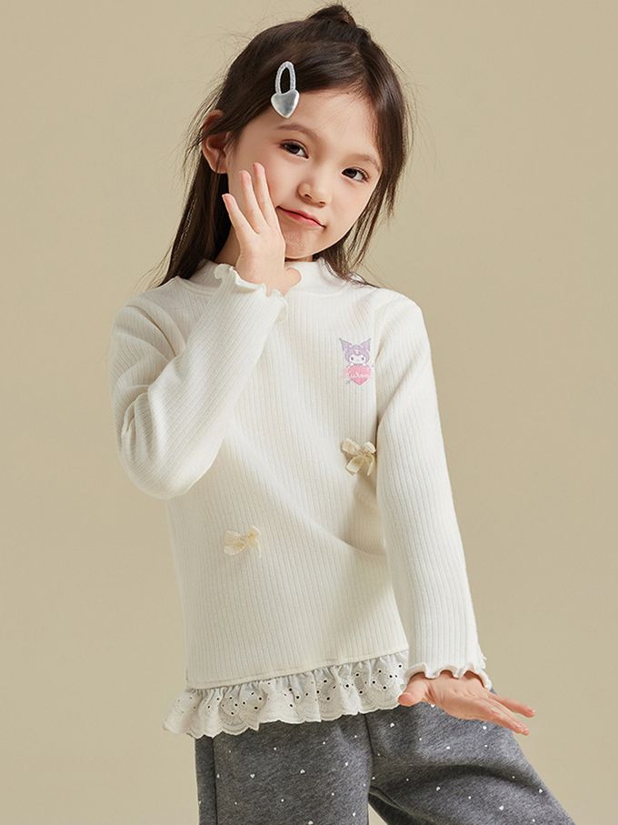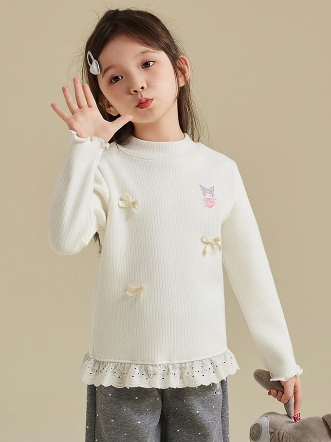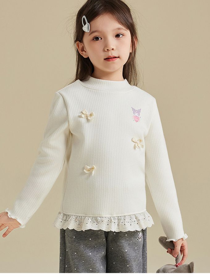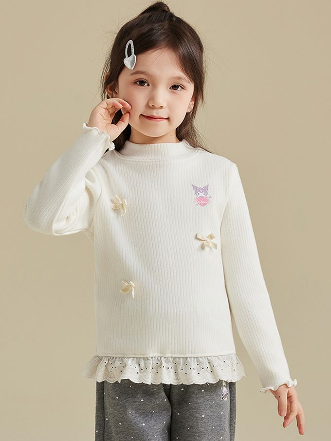 加絨半高領蕾絲花邊長袖上衣-卡通人物酷洛米-米杏