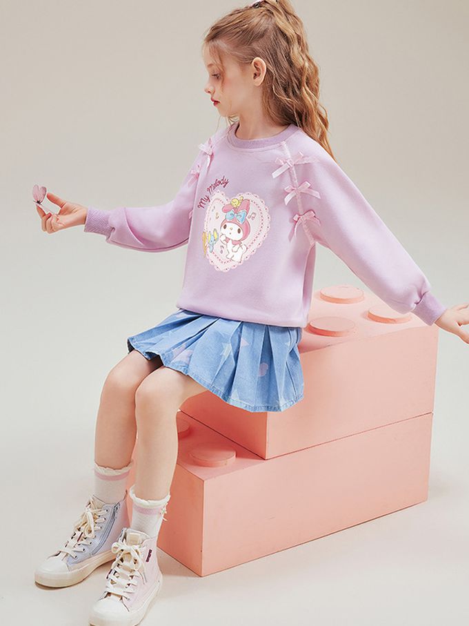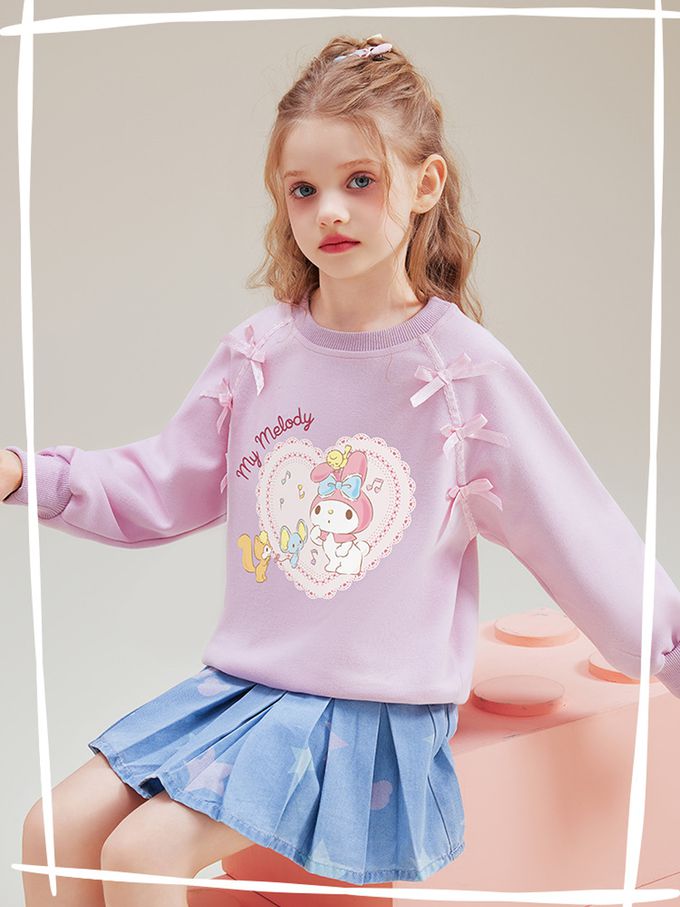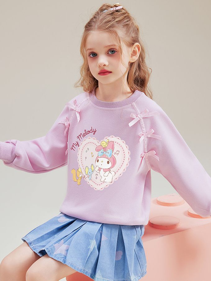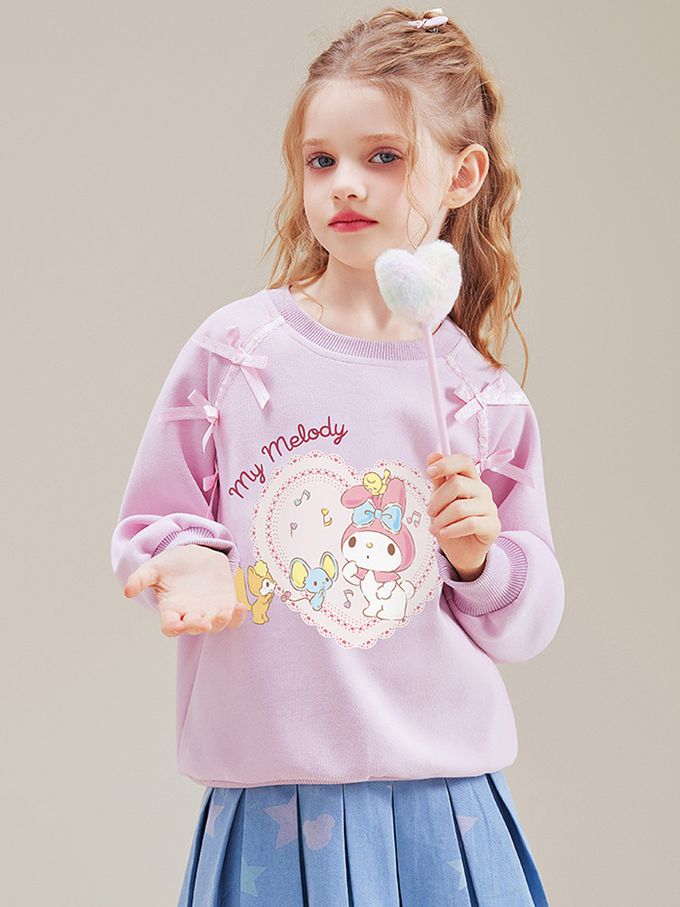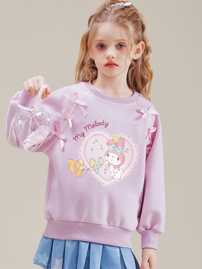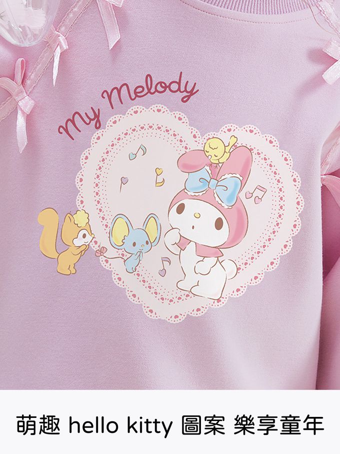 甜美蝴蝶結愛心印花長袖上衣/大學T-卡通人物美樂蒂-粉紫