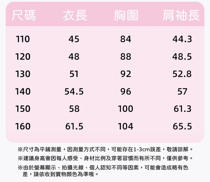 110cm、120cm、130cm、140cm、150cm、160cm