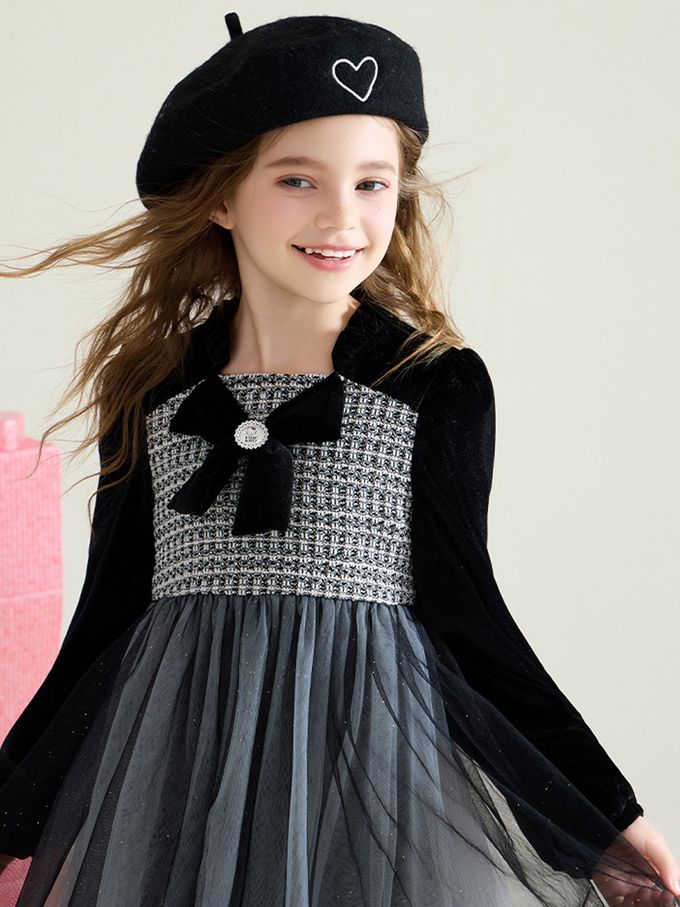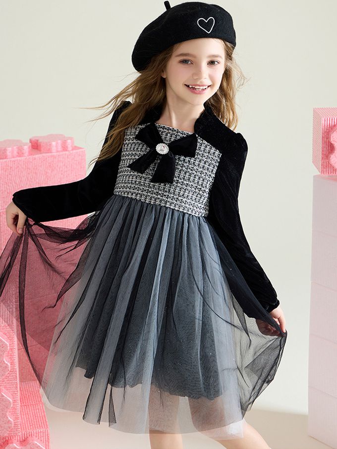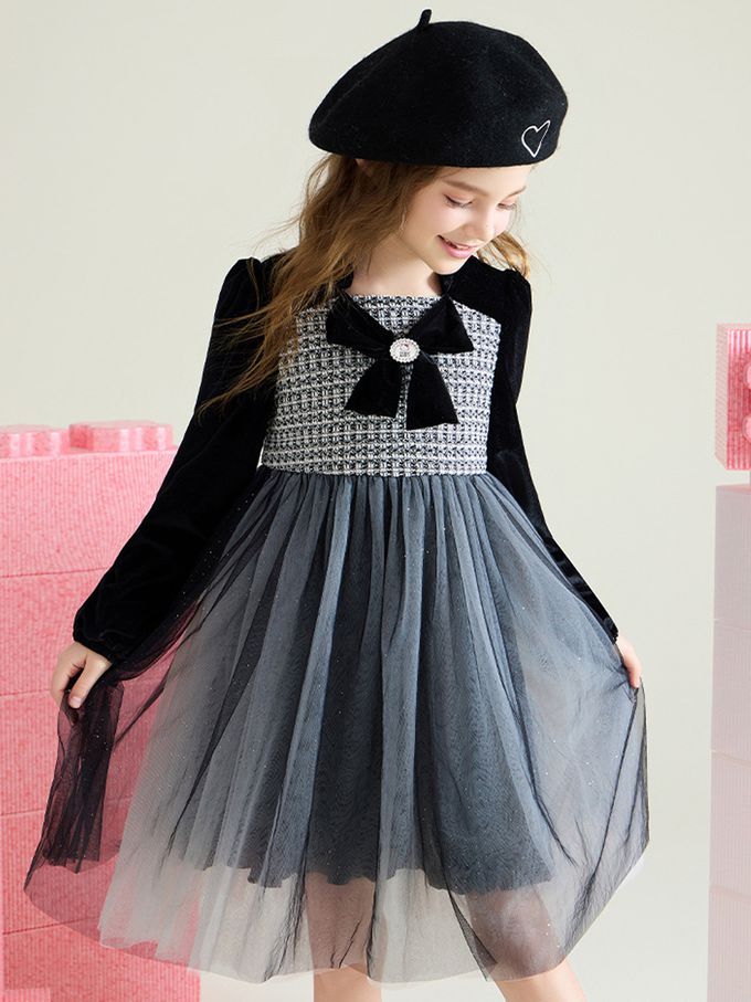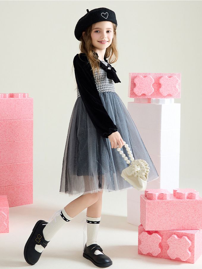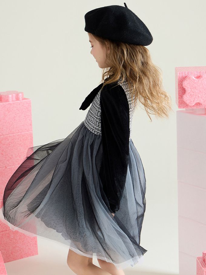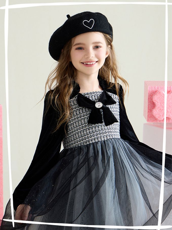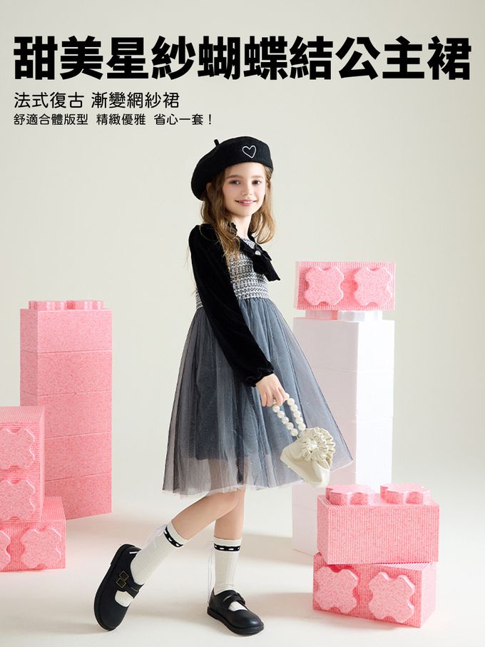 甜美星紗蝴蝶結公主裙-卡通人物Hello Kitty-黑色