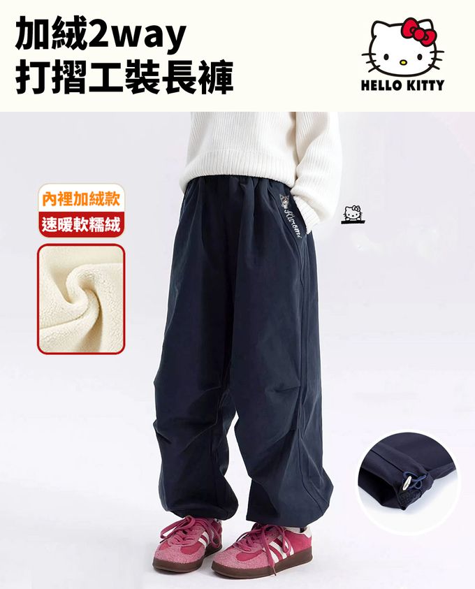 加絨2way打摺工裝長褲-卡通人物酷洛米-藏青