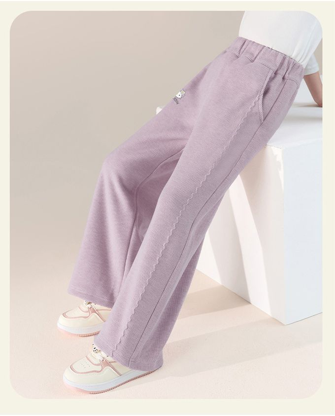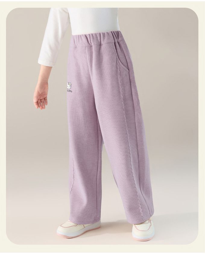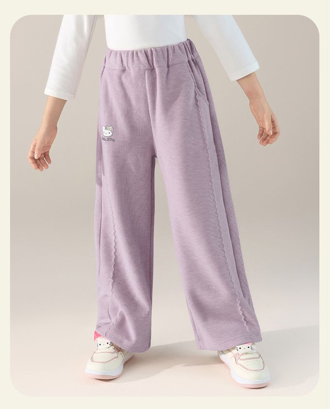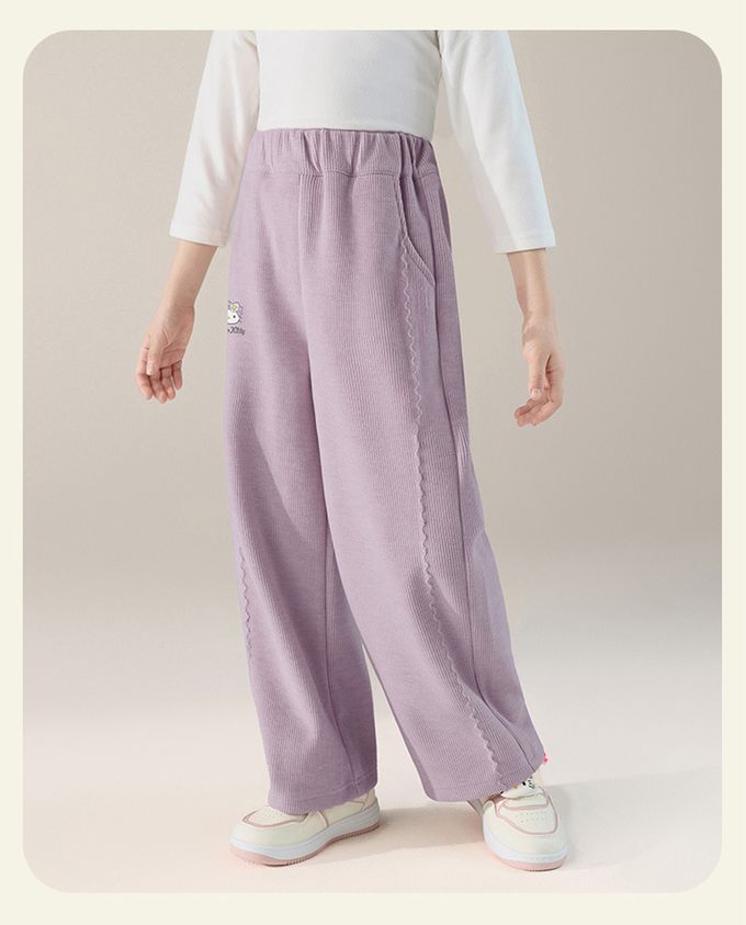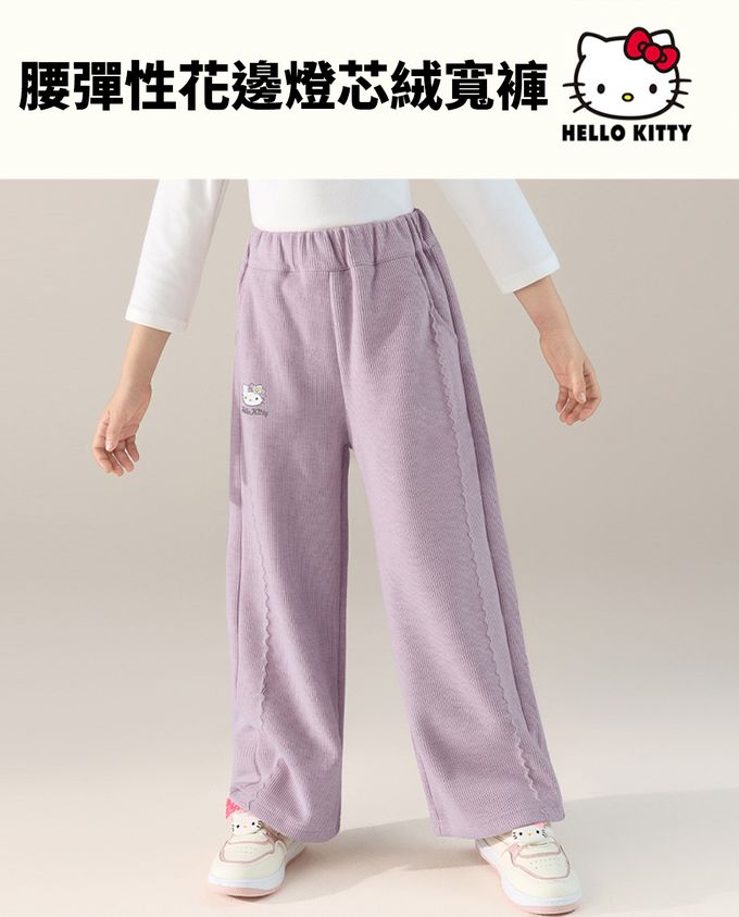 腰彈性花邊燈芯絨寬褲-卡通人物Hello Kitty-紫色