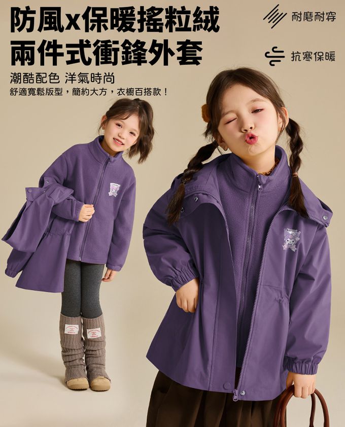 防風x保暖搖粒絨兩件式衝鋒外套-卡通人物酷洛米-甜心紫