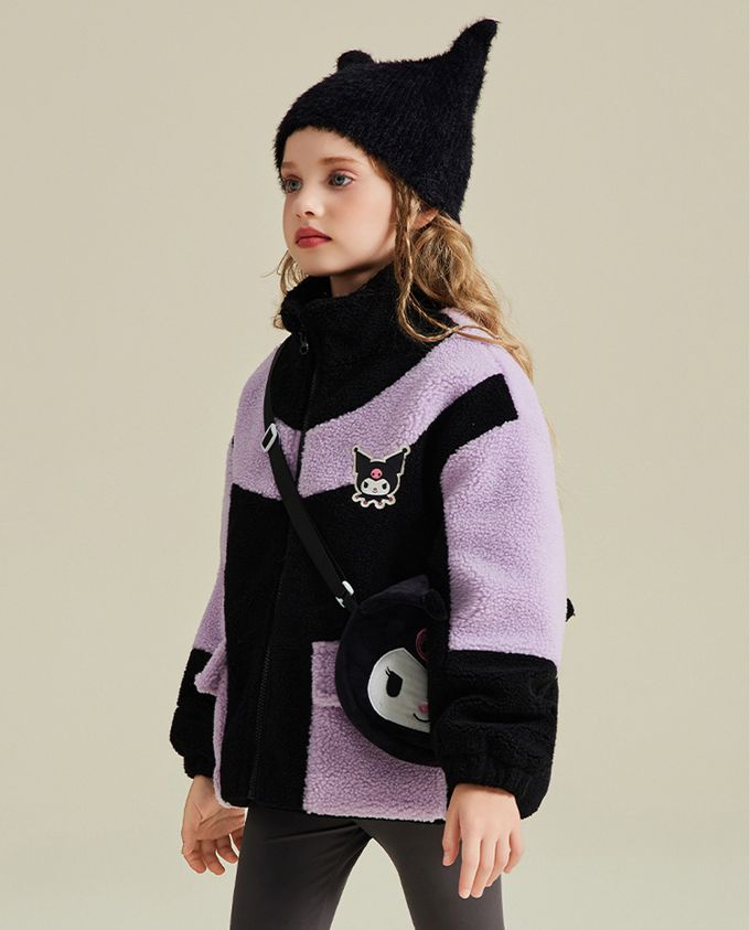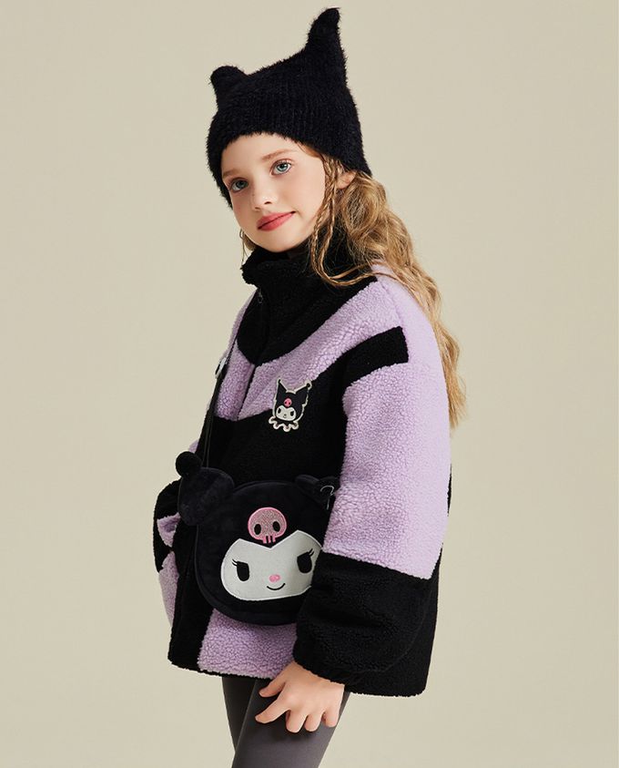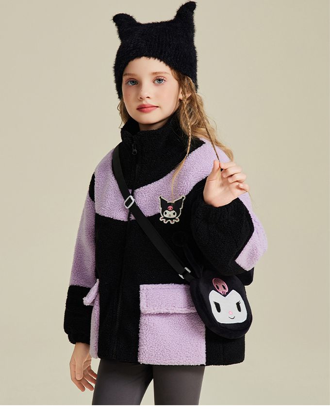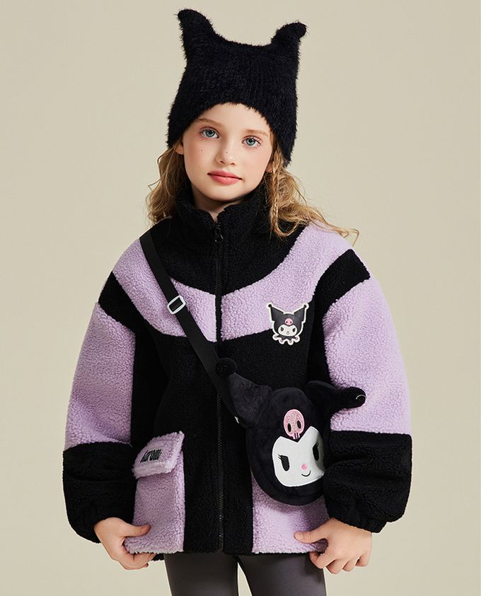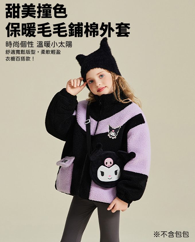 甜美撞色保暖毛毛鋪棉外套-卡通人物酷洛米-拼色紫