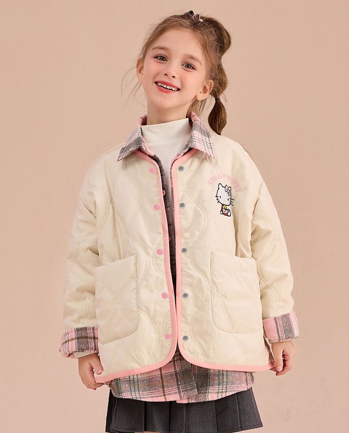 假兩件輕暖鋪棉翻領外套-卡通人物Hello Kitty-米杏