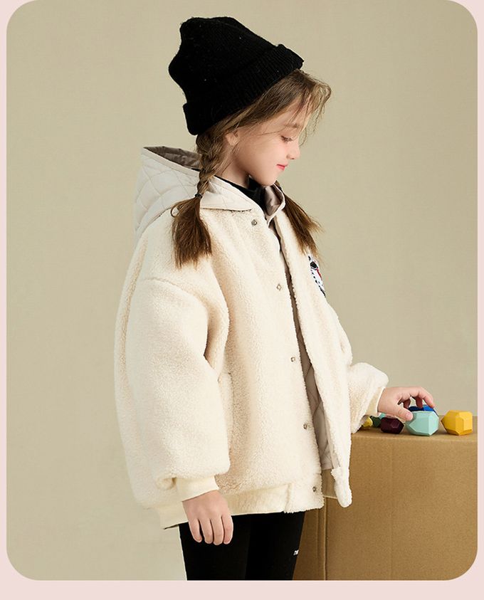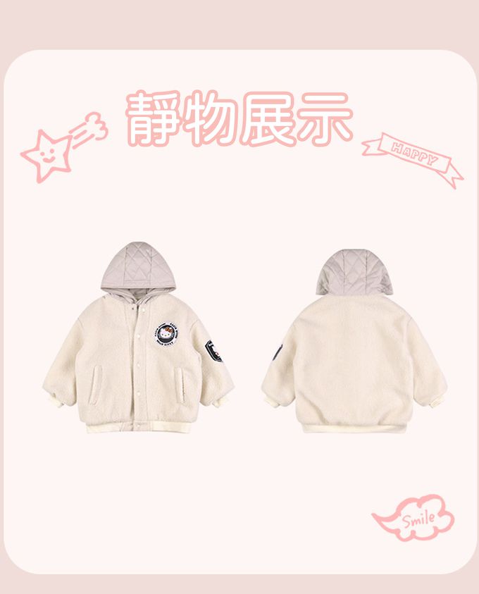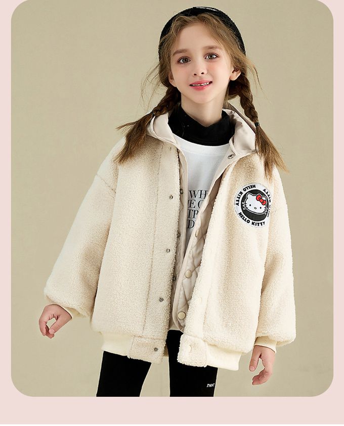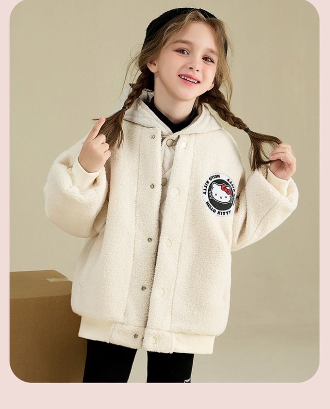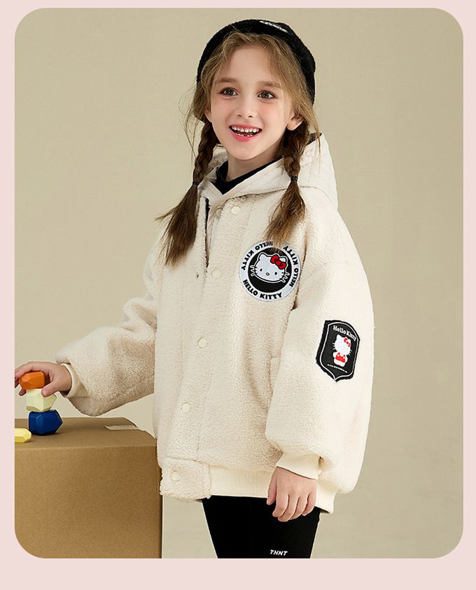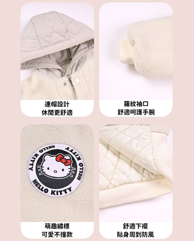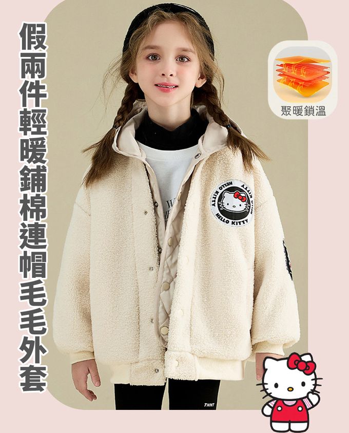 假兩件輕暖鋪棉連帽毛毛外套-卡通人物Hello Kitty-米杏