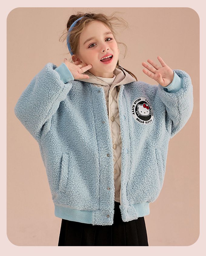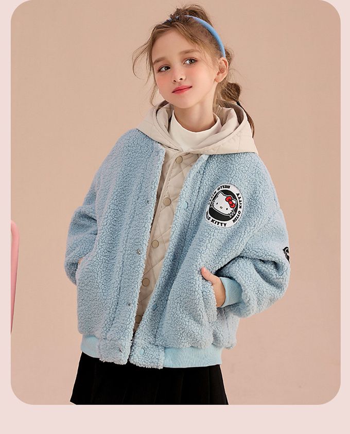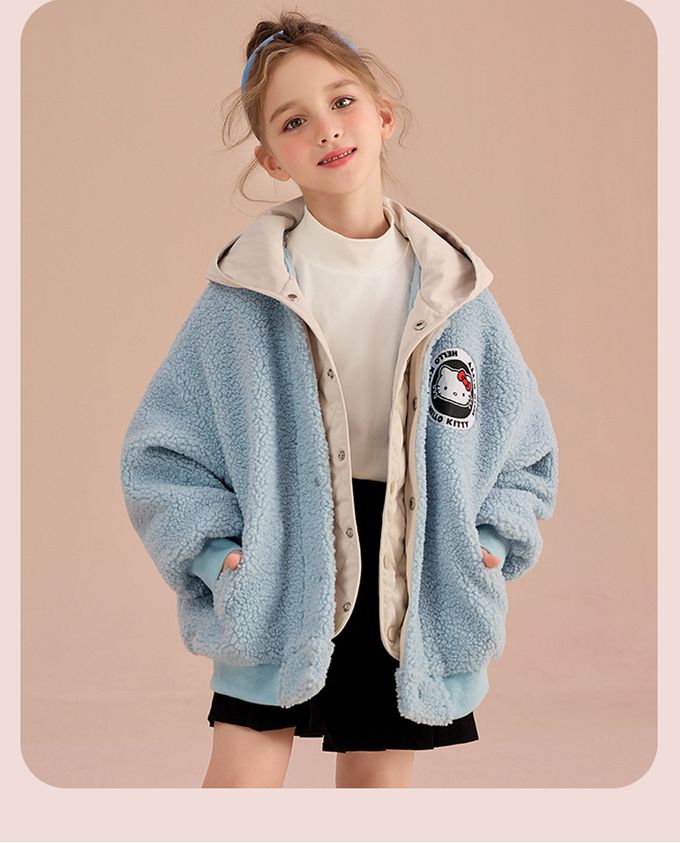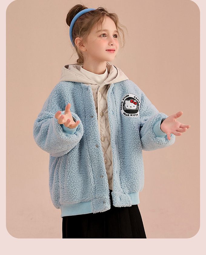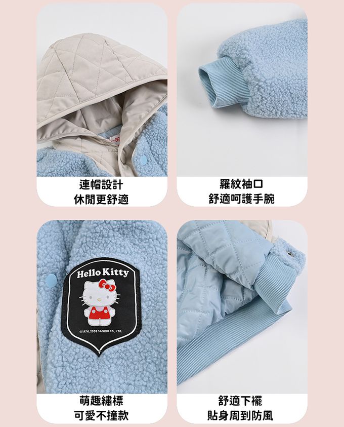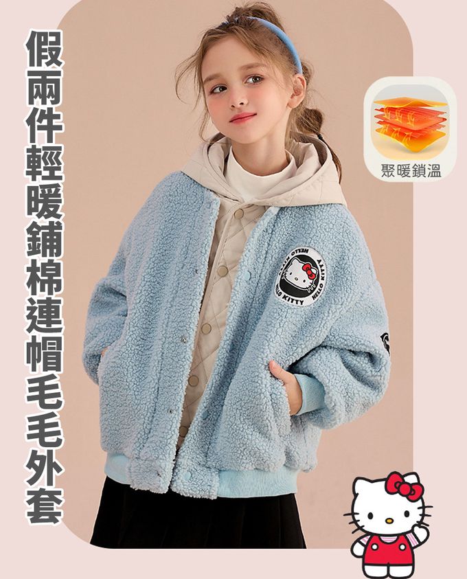 假兩件輕暖鋪棉連帽毛毛外套-卡通人物Hello Kitty-藍色