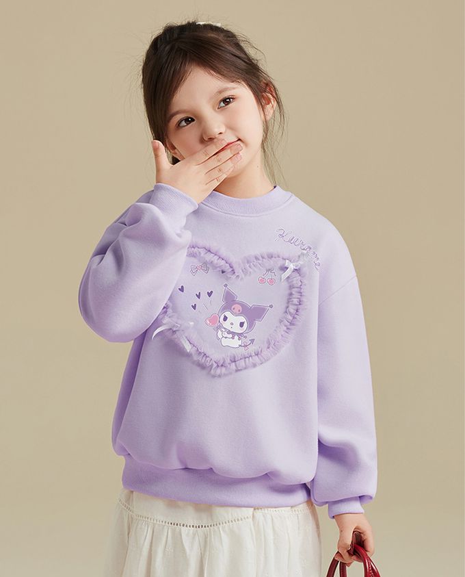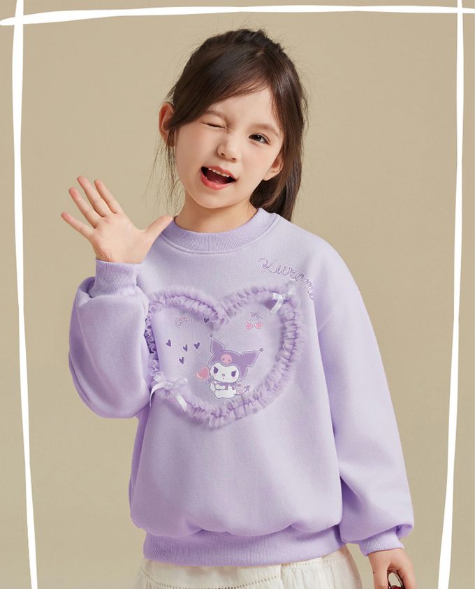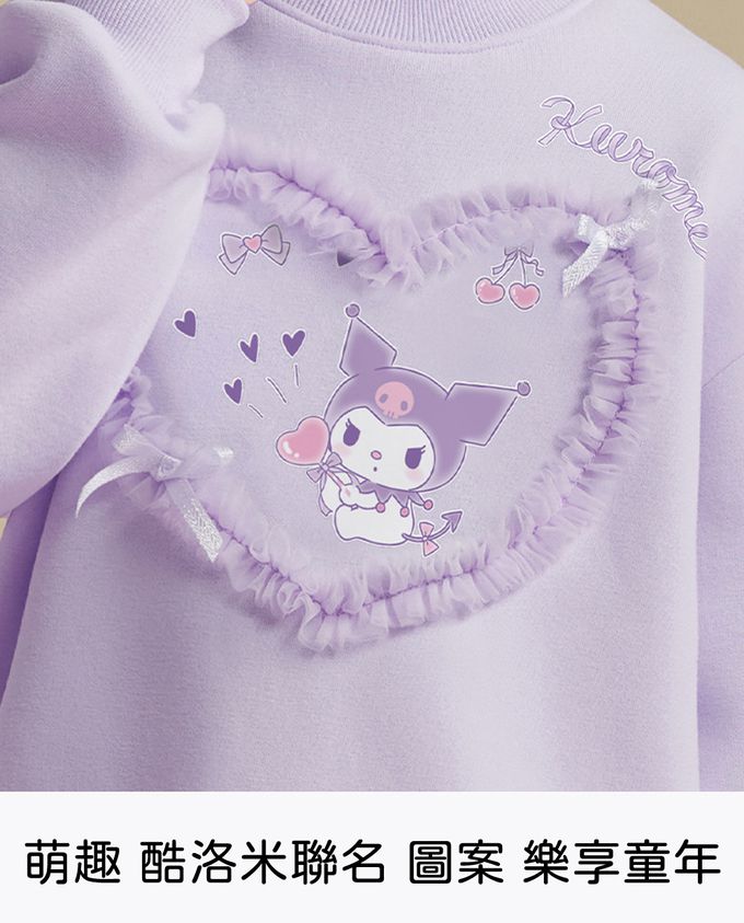 加絨愛心網紗長袖上衣/大學T-卡通人物酷洛米-紫色