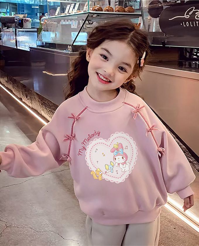 人氣卡通 - 加絨蝴蝶結長袖上衣/大學T-卡通人物美樂蒂-粉色