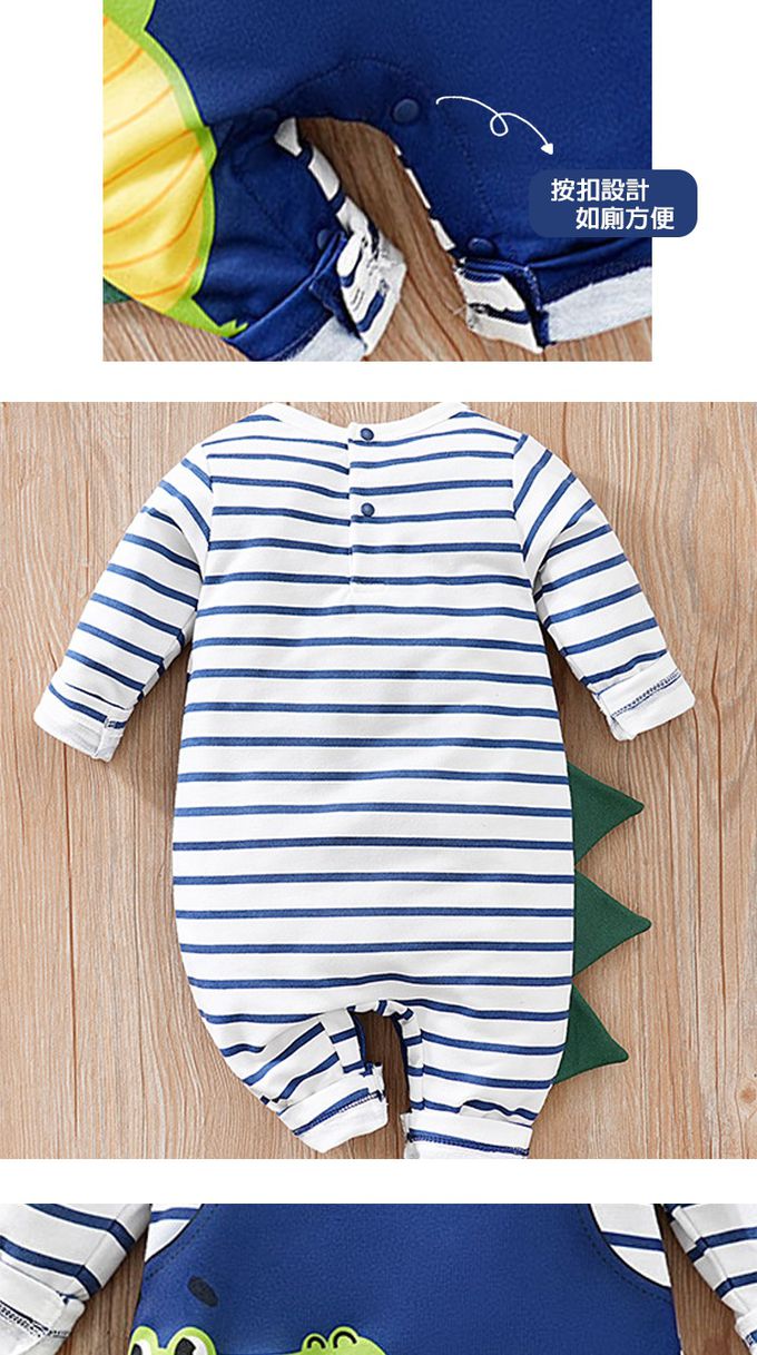 嬰兒長袖連身衣 秋冬造型 可愛包屁衣-背帶鱷魚