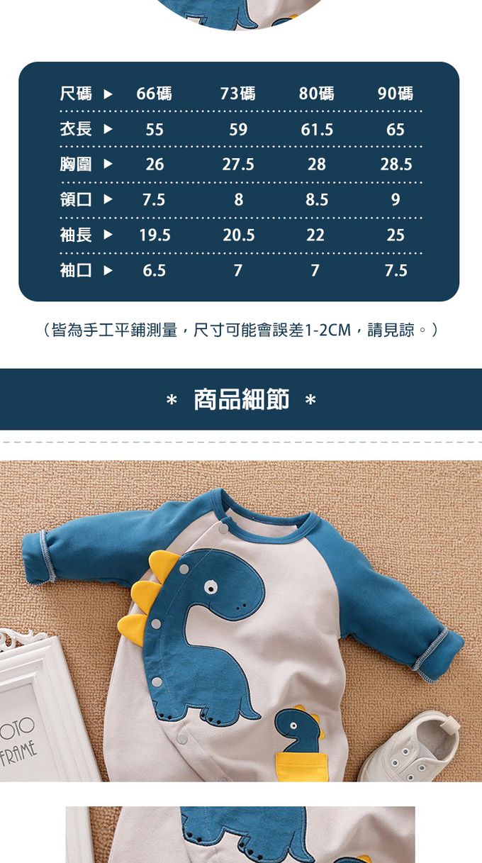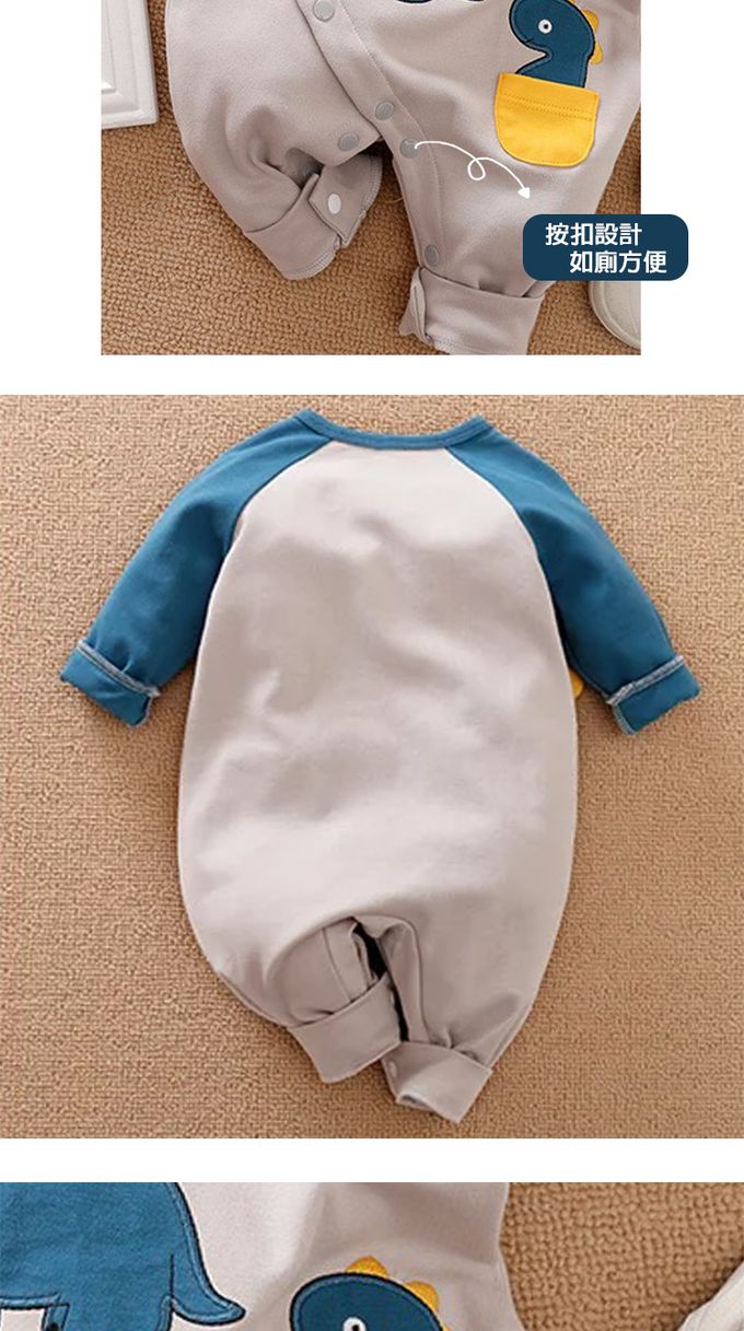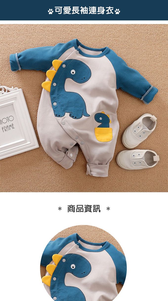 嬰兒長袖連身衣 秋冬造型 可愛包屁衣-湖藍恐龍