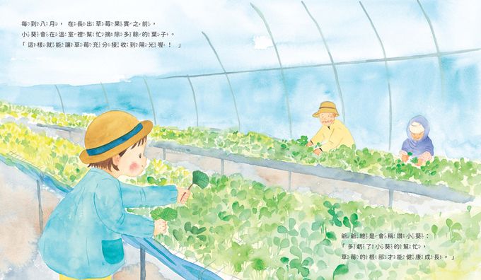 小葵也很喜歡到草莓園裡幫忙爺爺栽種草莓。