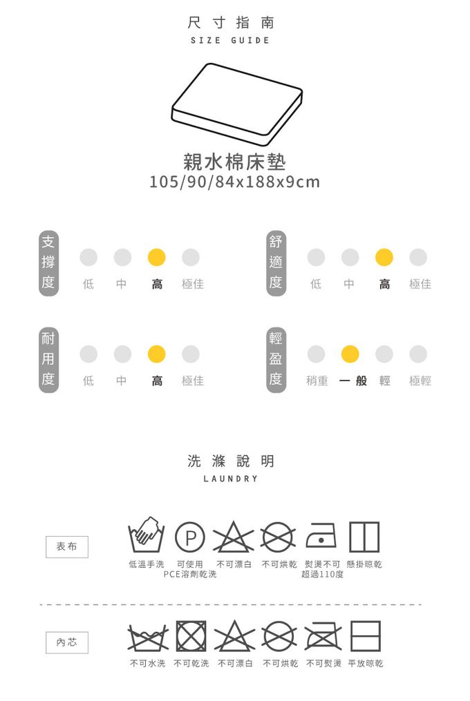 品名:單人90cm-沁涼舒柔親水棉床墊