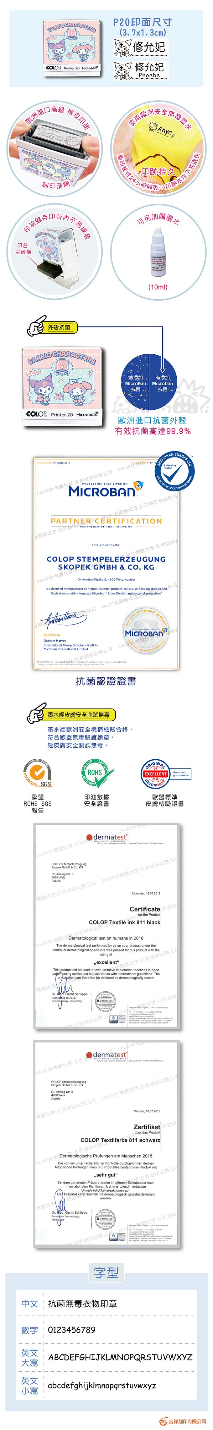 本品印章類型為:抗菌衣物印章 適用墨水為:吉祥刻印 - 德國製環保紡織印油-抗菌衣物印章專用-黑色墨水-10ml