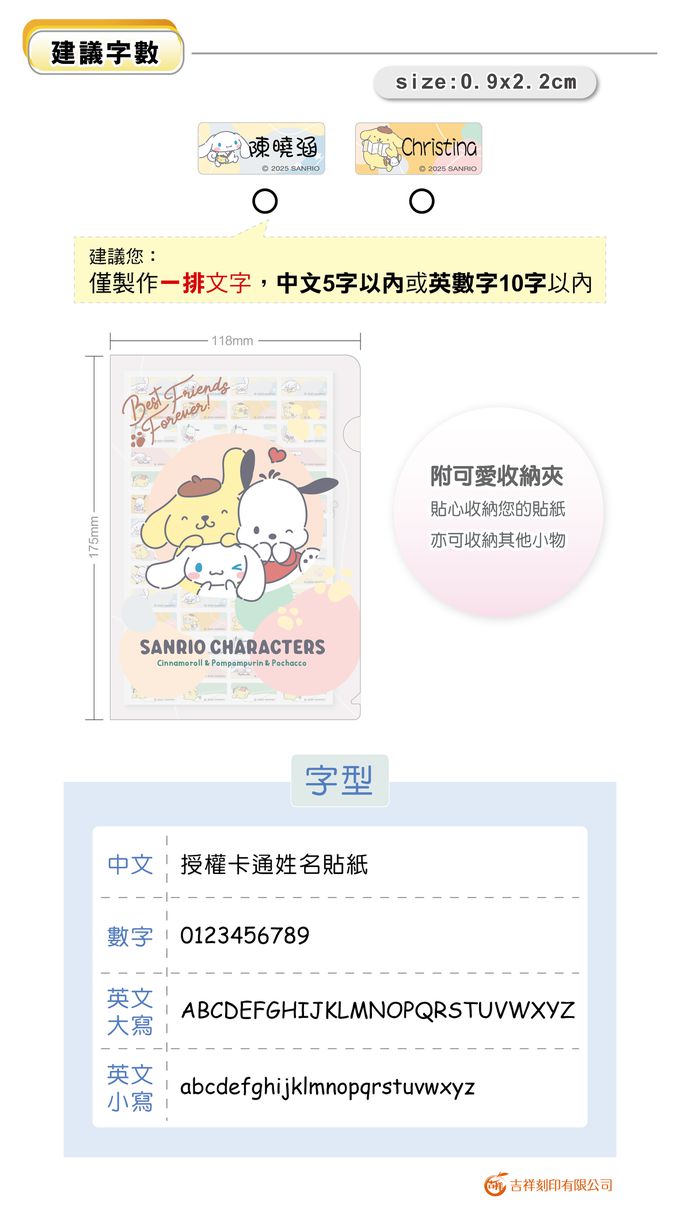 任選 2 件免運專區 - 正版授權!三麗鷗 ❤︎ 姓名衣物印章、洗手章、日期章、回墨章