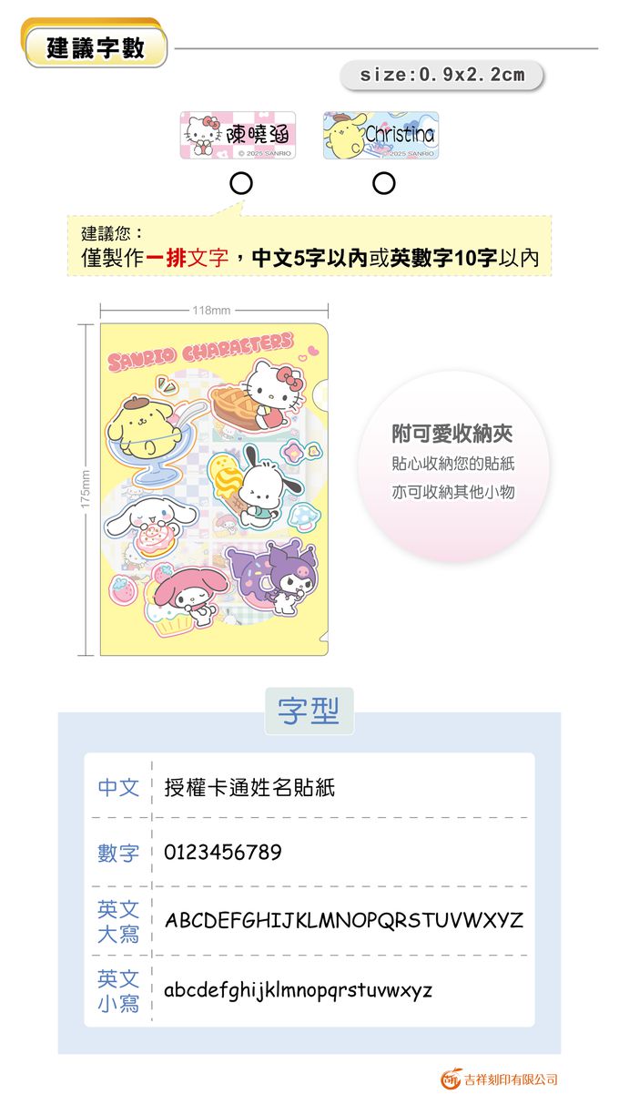 品名:三麗鷗-童趣風-鑽石版姓名貼