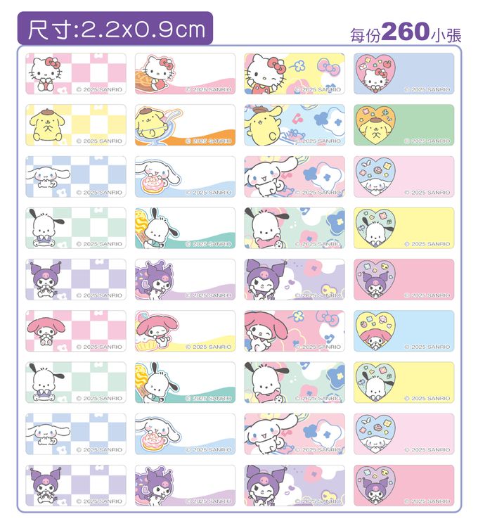 三麗鷗-童趣風-鑽石版姓名貼-0.9x2.2公分(每份260小張)
