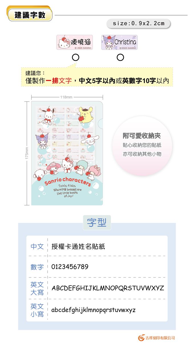 任選 2 件免運專區 - 正版授權!三麗鷗 ❤︎ 姓名衣物印章、洗手章、日期章、回墨章