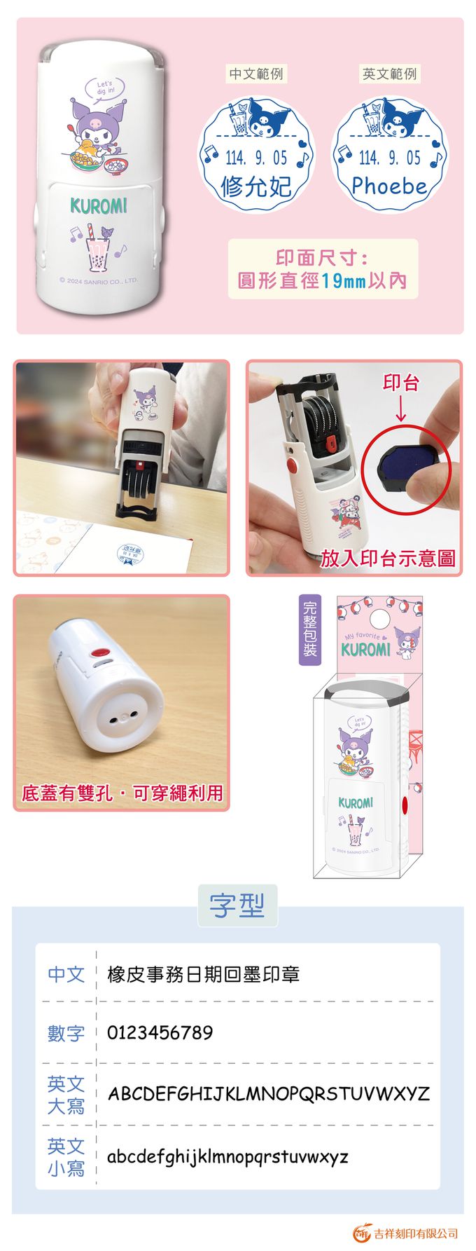 品名:酷洛米-台灣在地風(3) 日期章-民國年-藍色墨-印面尺寸:圓形直徑1.9公分