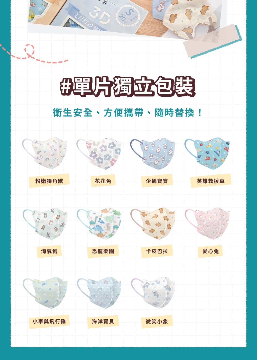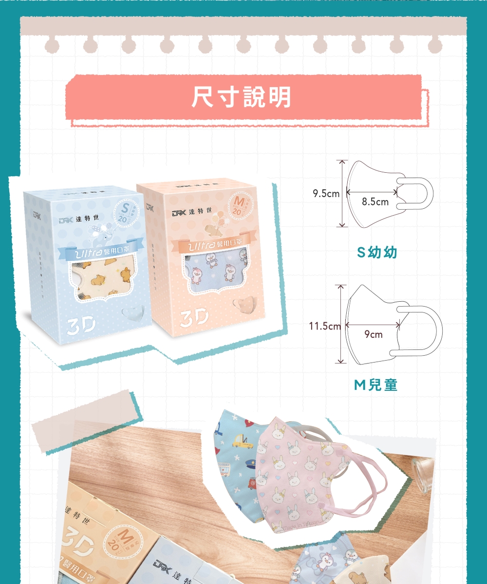 醫用3D Ultra口罩-淘氣夠-兒童M-20入 小朋友非常喜歡口罩的圖案