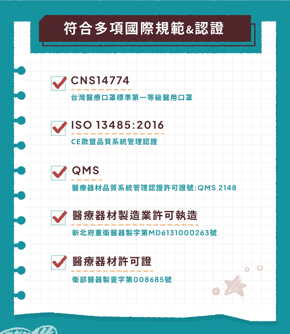 醫療器材許可證品名:"達特世" 醫用口罩 (未滅菌)