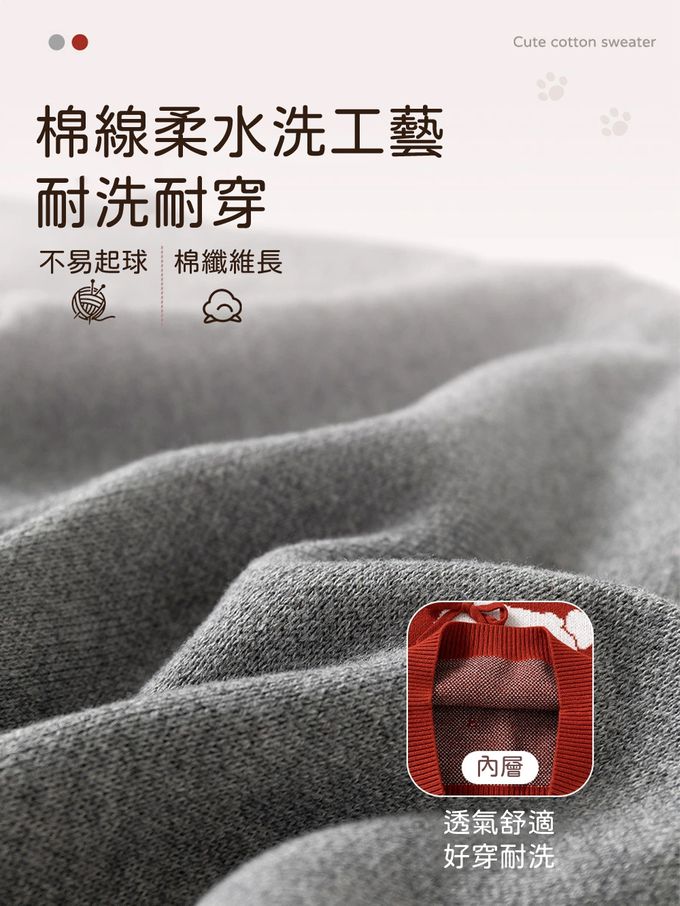 毛衣穿起來很可愛,正面滿版熊貓,後面是無圖案,顏色是偏磚紅色