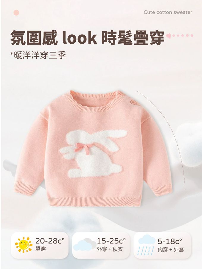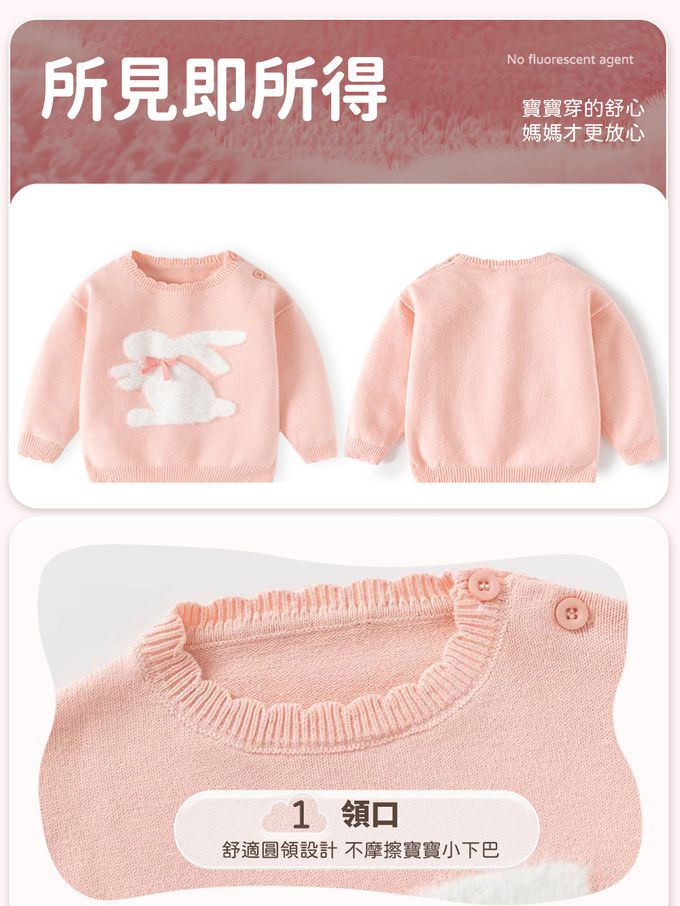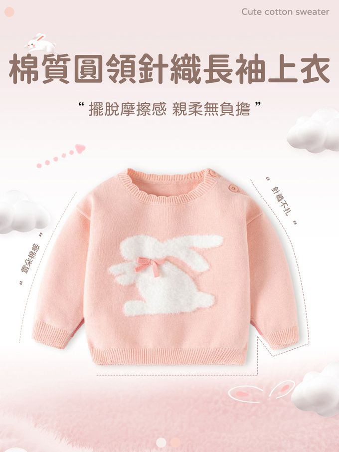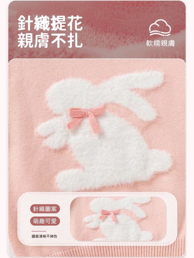 棉質圓領針織長袖上衣-蝴蝶結白兔-粉色