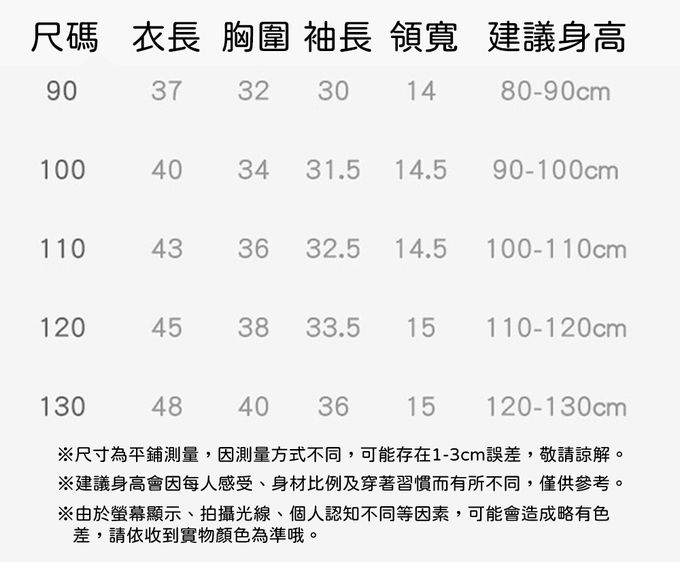 90cm、100cm(無肩扣)、110cm(無肩扣)、120cm(無肩扣)、130cm(無肩扣)