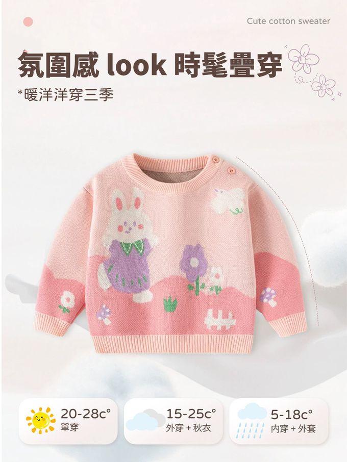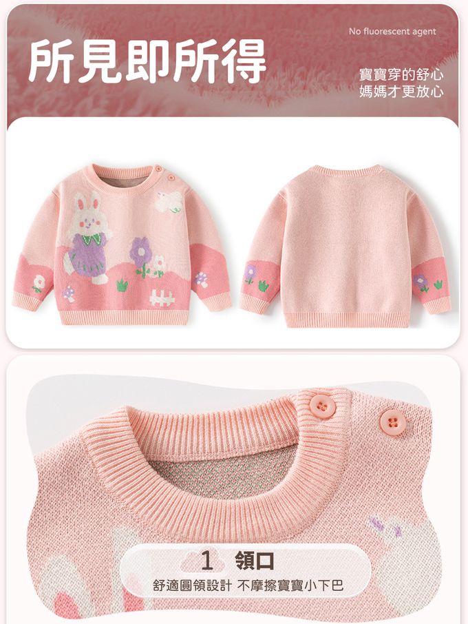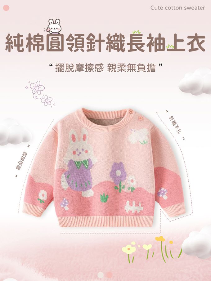 純棉圓領針織長袖上衣-快樂小兔-粉色