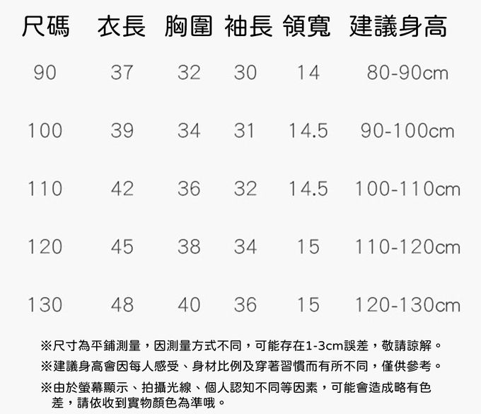 90cm、100cm(無肩扣)、110cm(無肩扣)、120cm(無肩扣)、130cm(無肩扣)