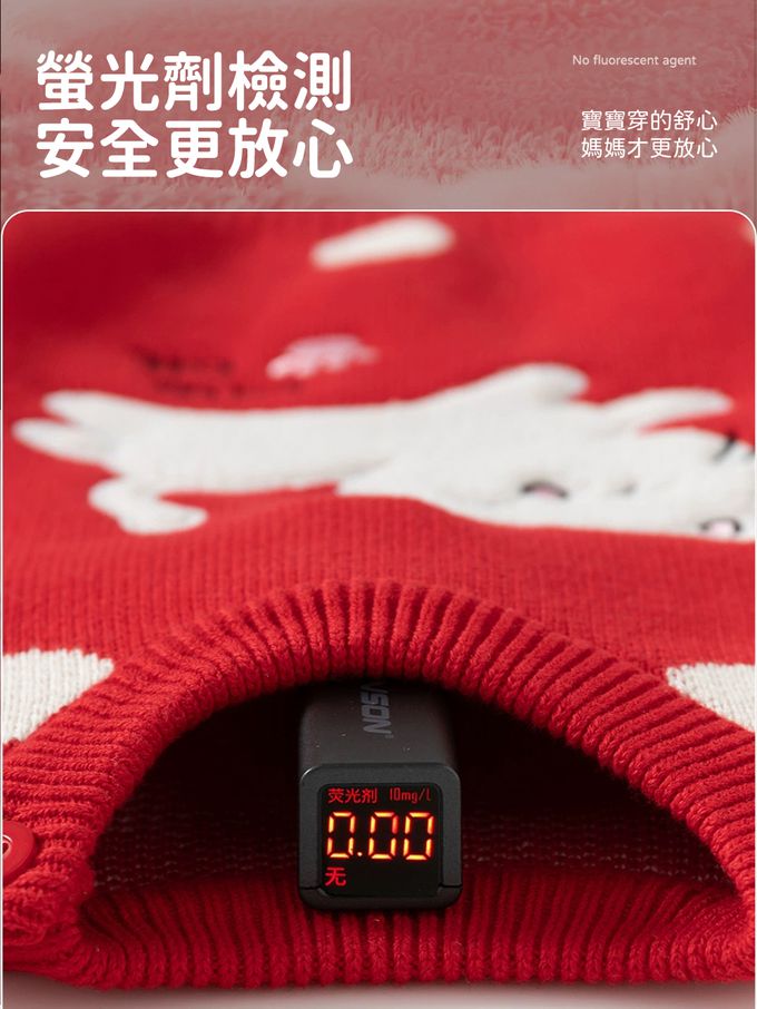 毛衣穿起來很可愛,正面滿版熊貓,後面是無圖案,顏色是偏磚紅色