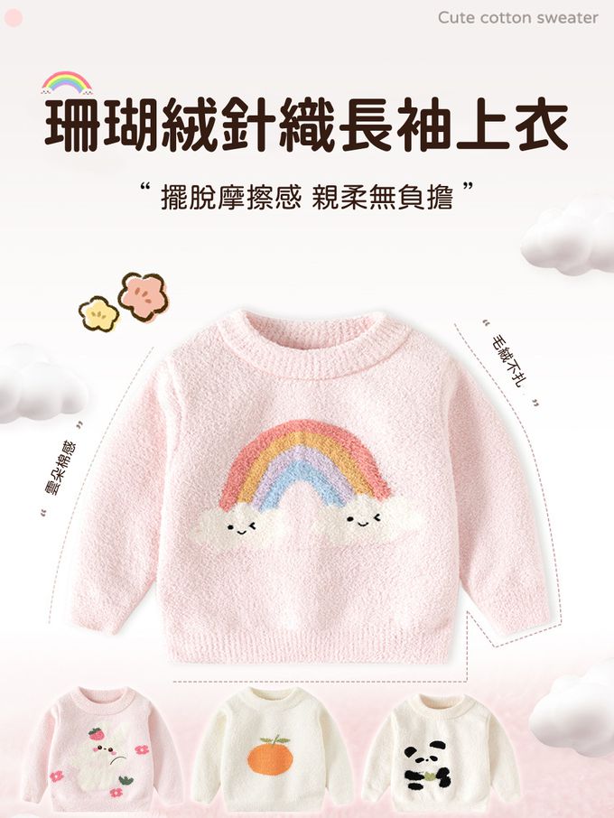 珊瑚絨針織長袖上衣-草莓兔-粉色