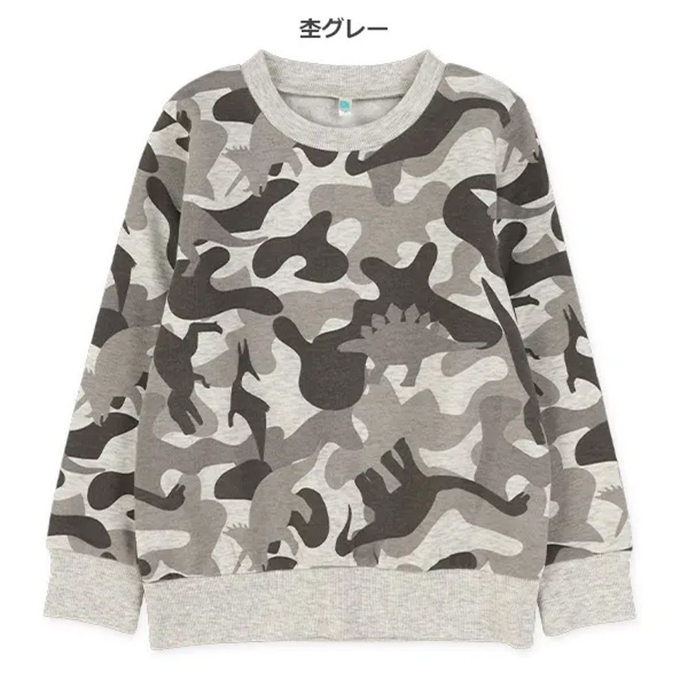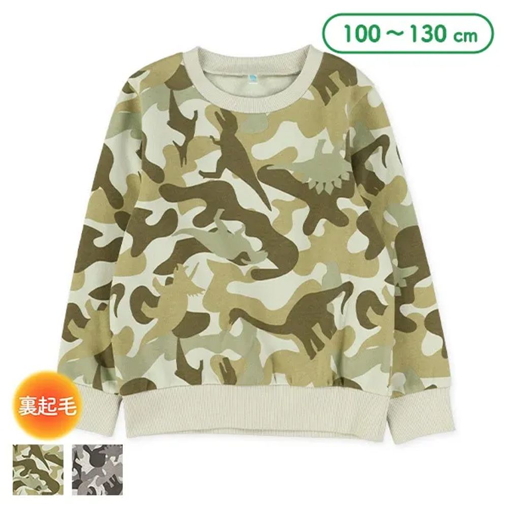 日本西松屋 - 帥氣恐龍迷彩裏起毛長袖上衣-灰