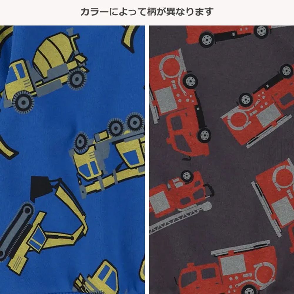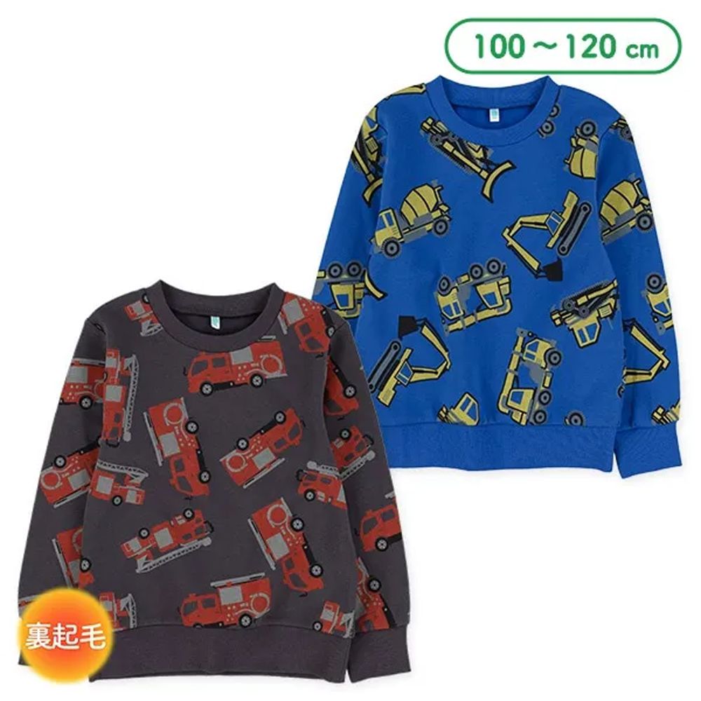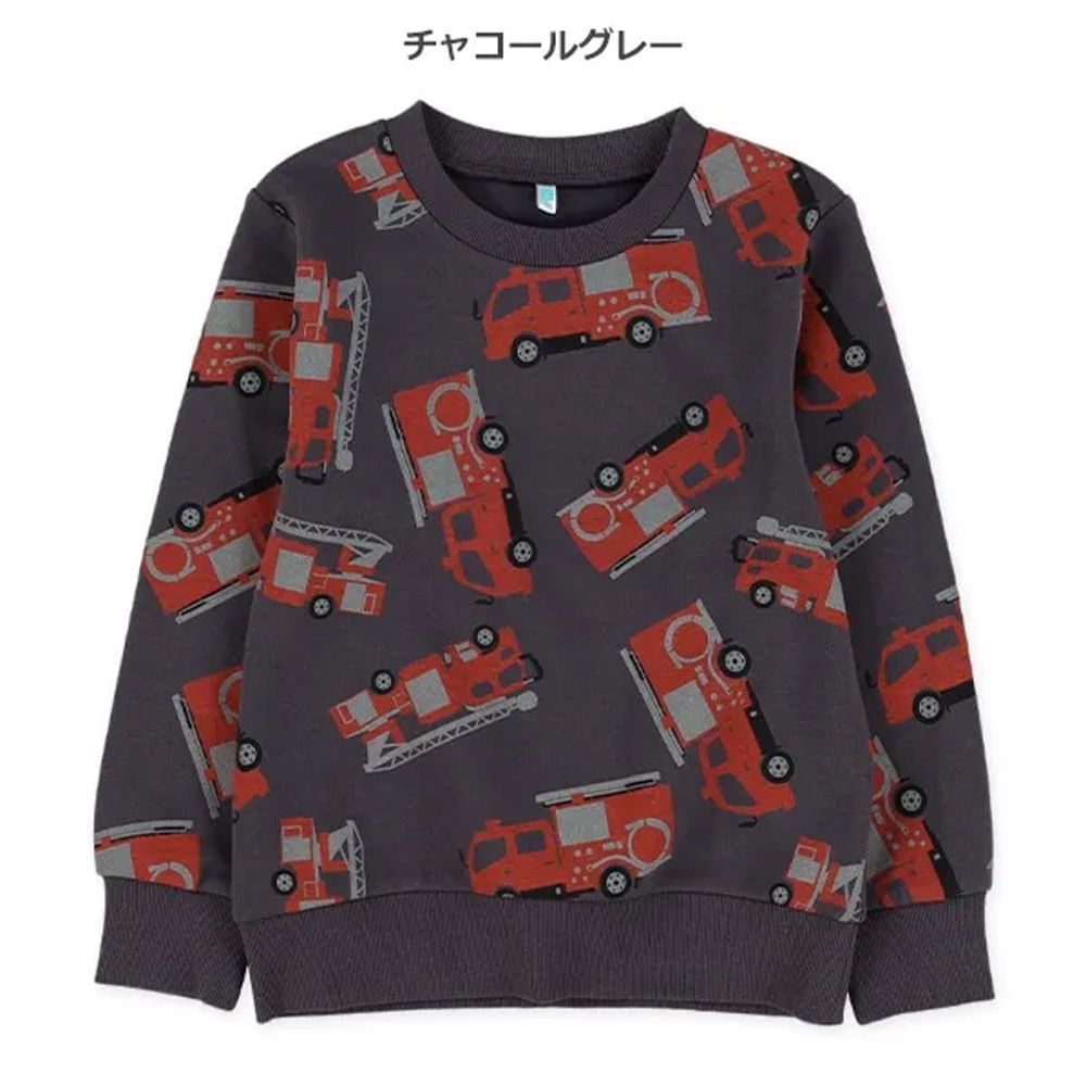 日本西松屋 - 滿版工作車裏起毛長袖上衣-消防車-深灰