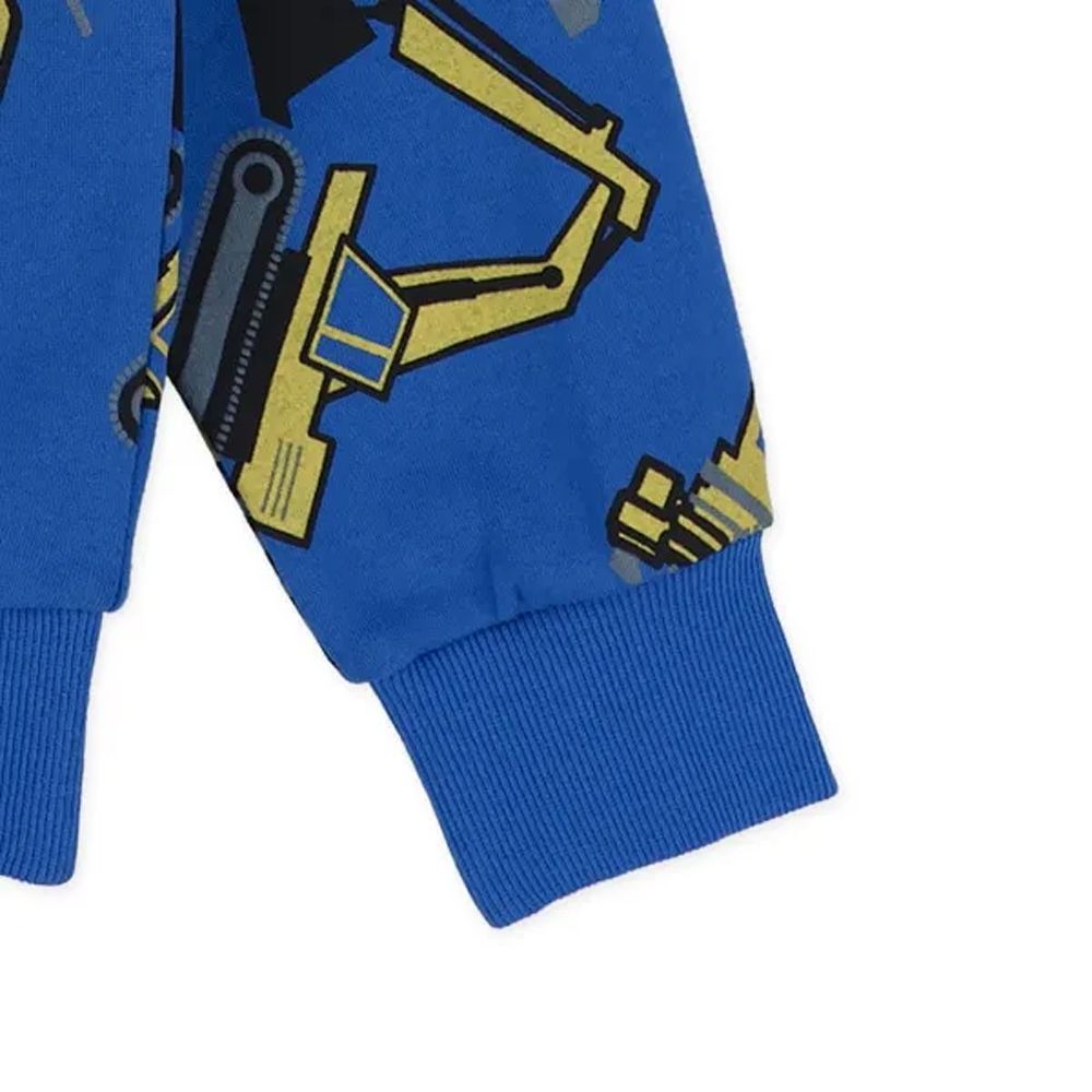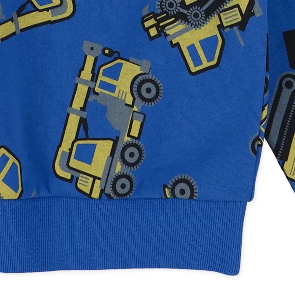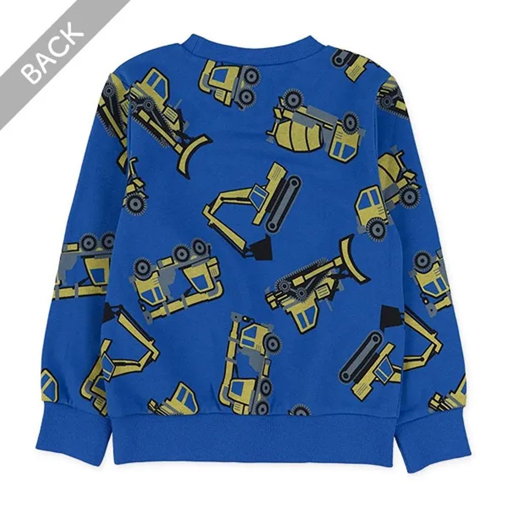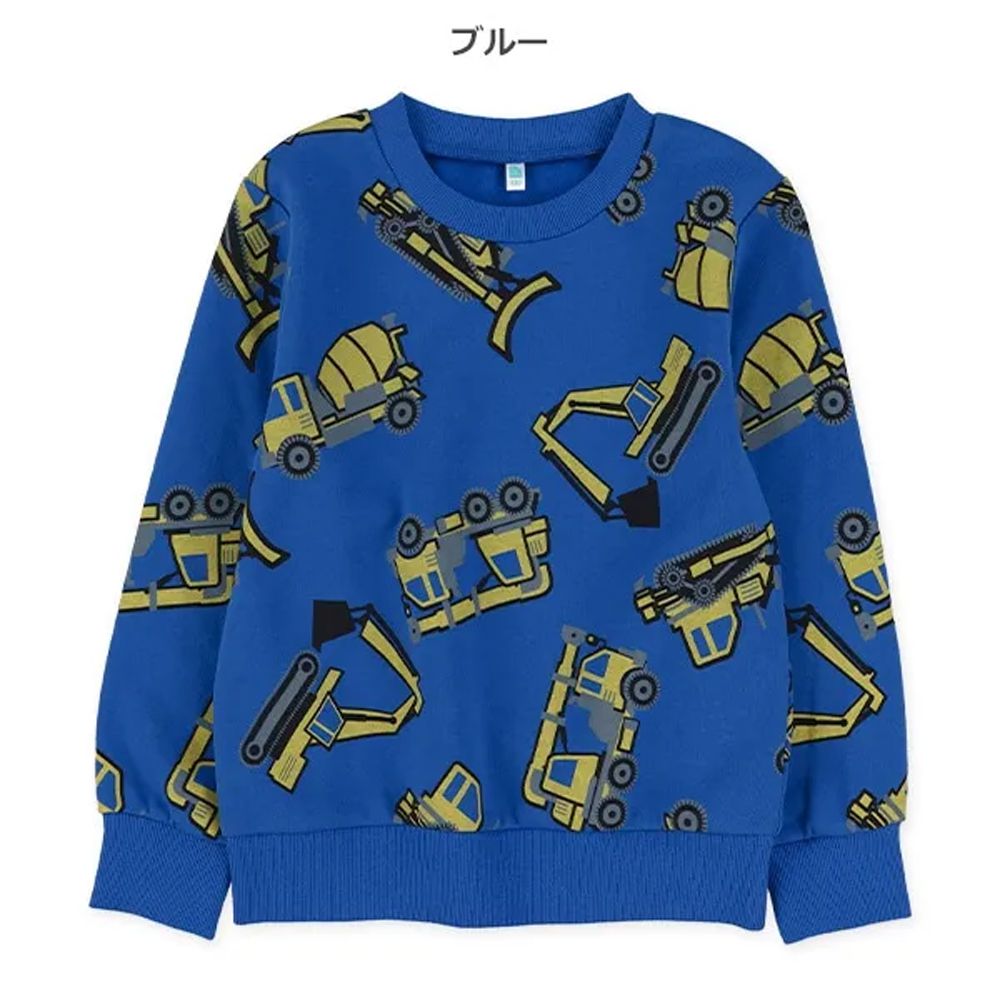 日本西松屋 - 滿版工作車裏起毛長袖上衣-消防車-深灰