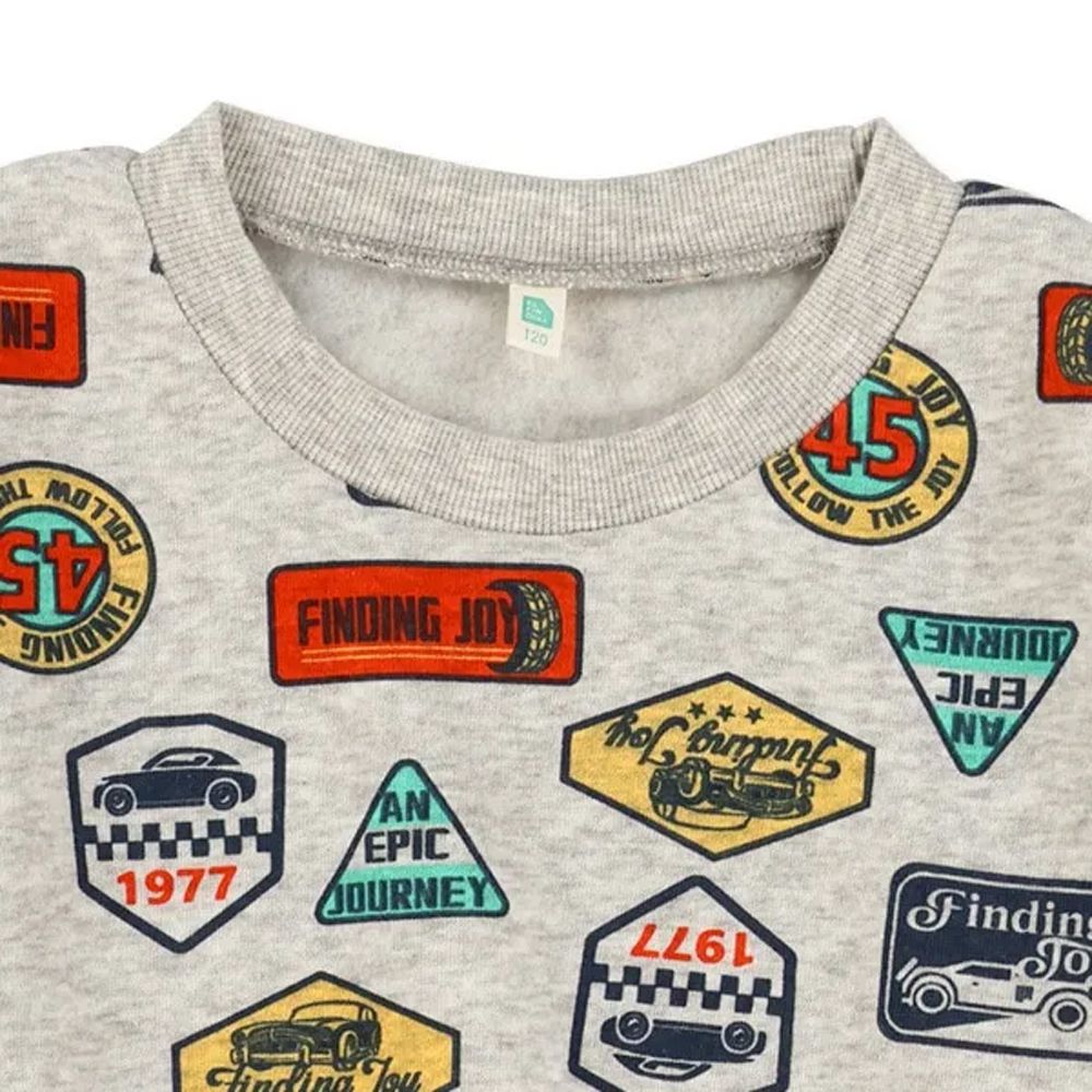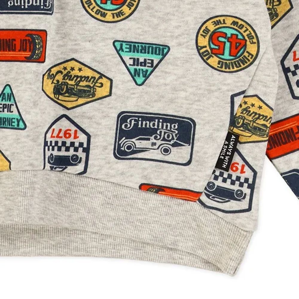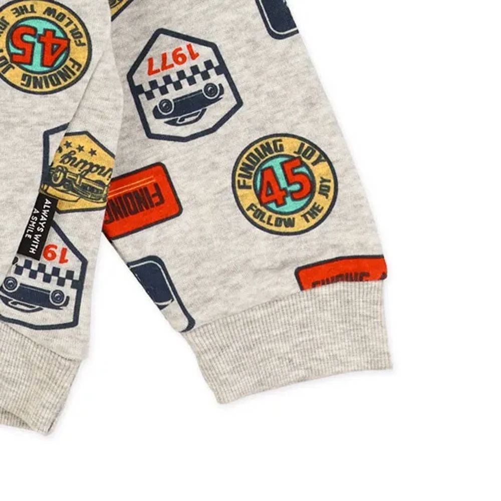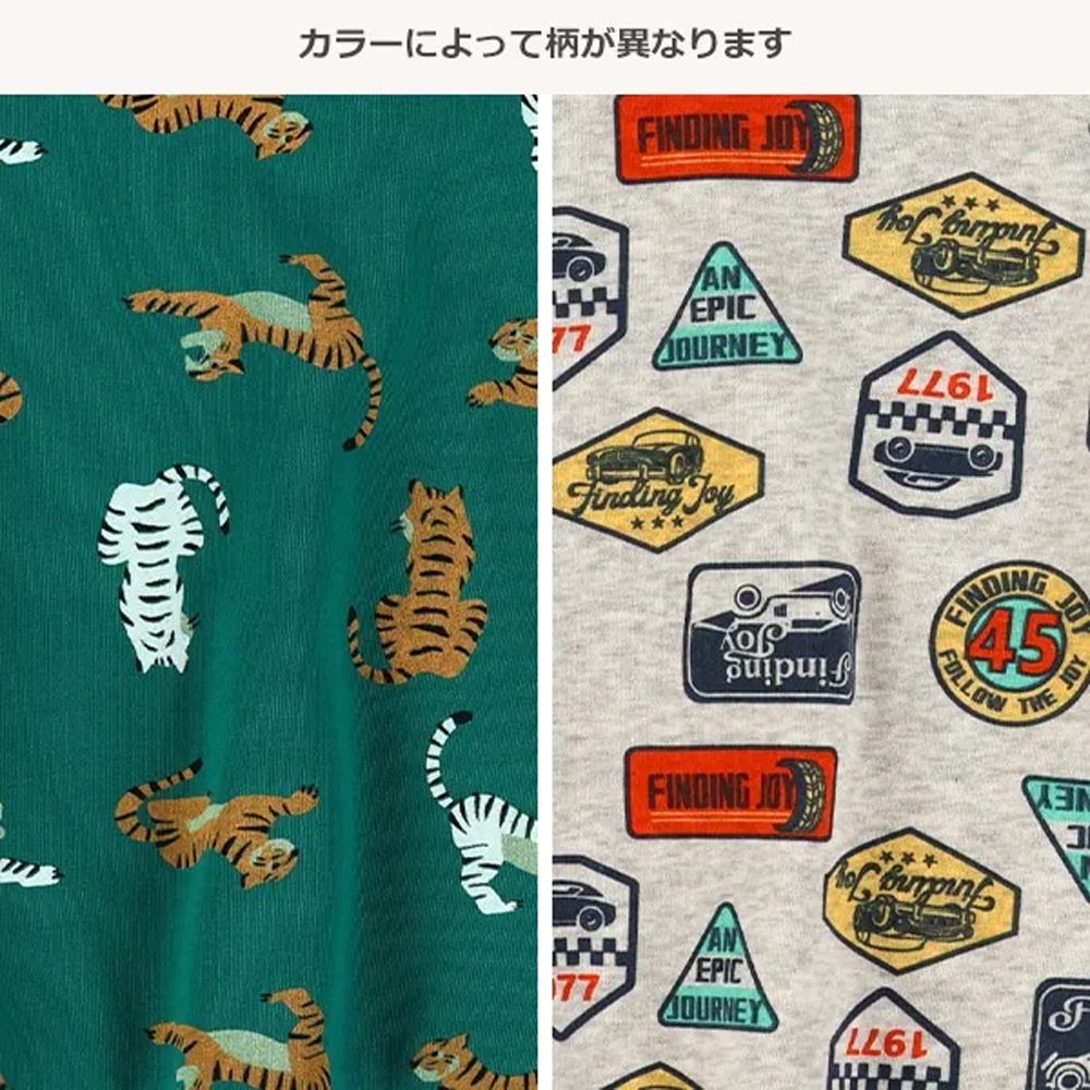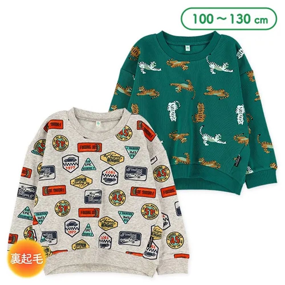 日本西松屋 - 滿版個性風裏起毛長袖上衣-老虎-濃綠