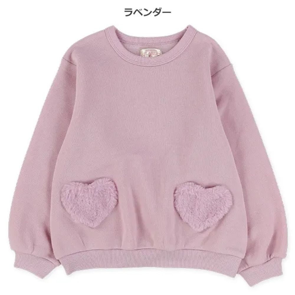 日本西松屋 - 毛絨愛心口袋裏起毛長袖上衣-紫