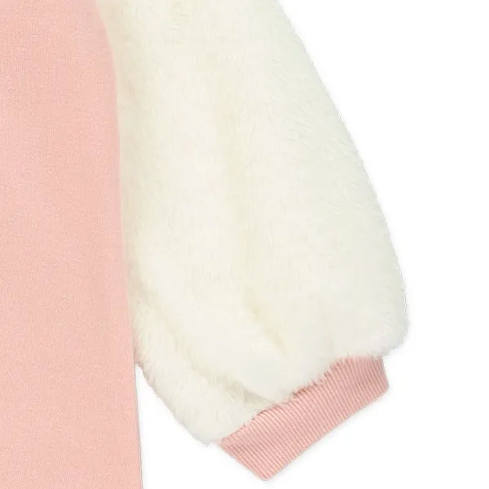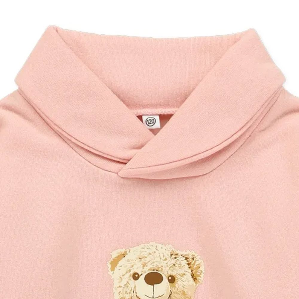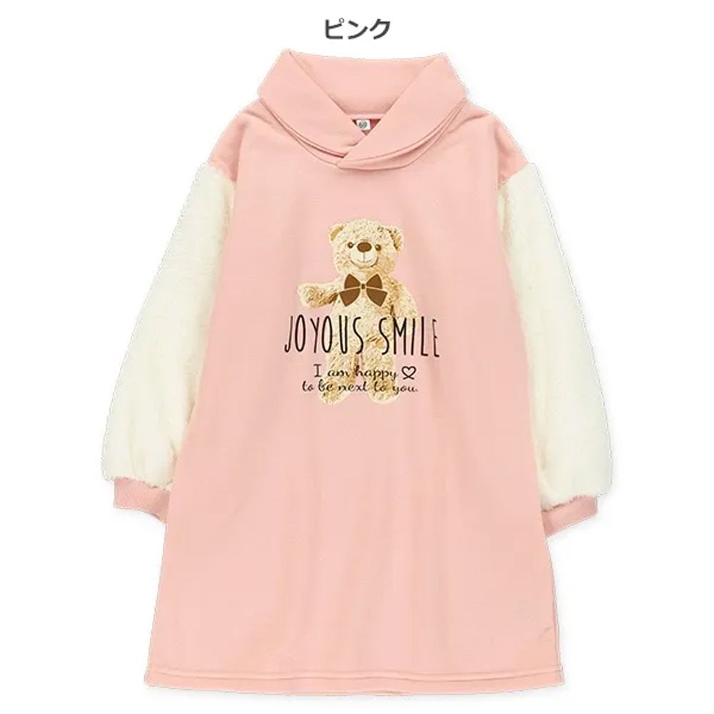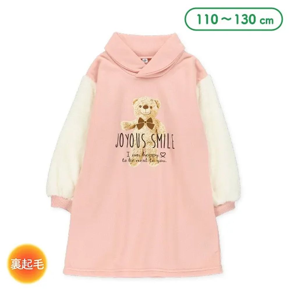 日本西松屋 - 可愛小熊毛絨拼接裏起毛長袖洋裝-粉紅