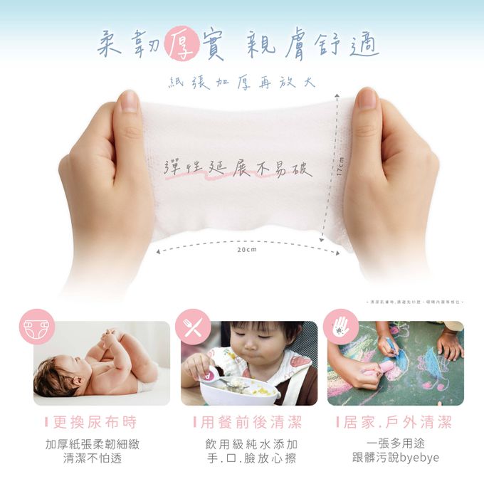 使用方式:最安心的BLW餐後幫手 ,一抽就乾淨, 口、手、臉、餐具使用都OK!!