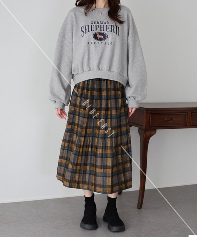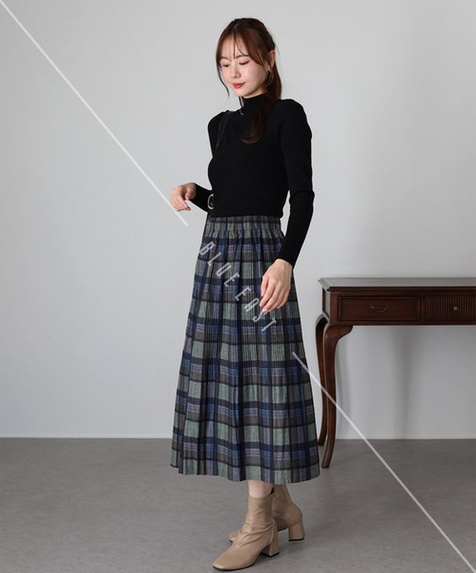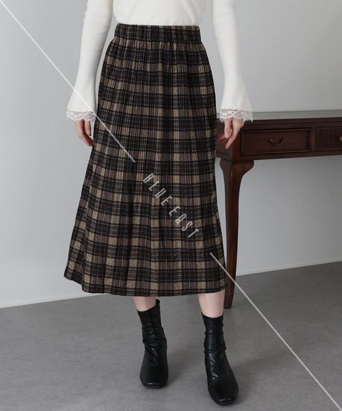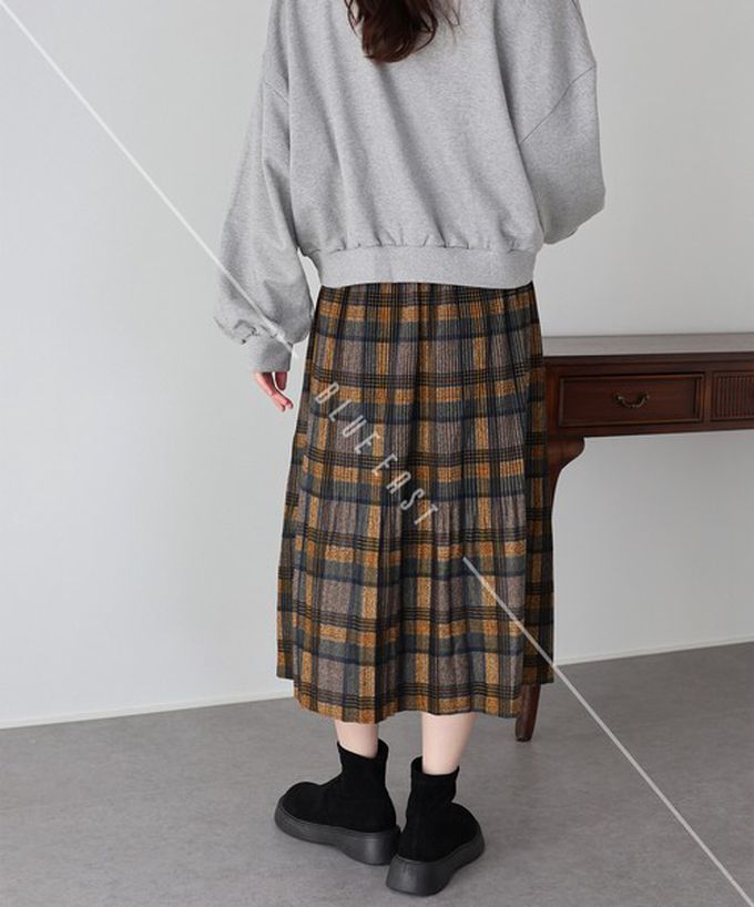 • 品名:經典季節感格紋百褶長裙