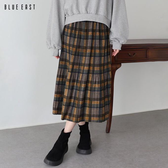 日本 BLUE EAST - 經典季節感格紋百褶長裙-藍綠系 (M)