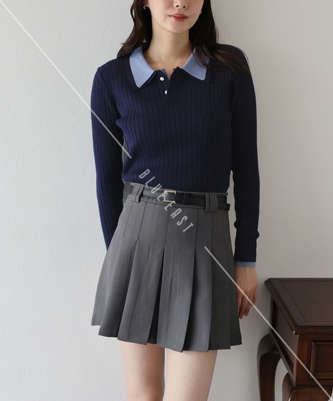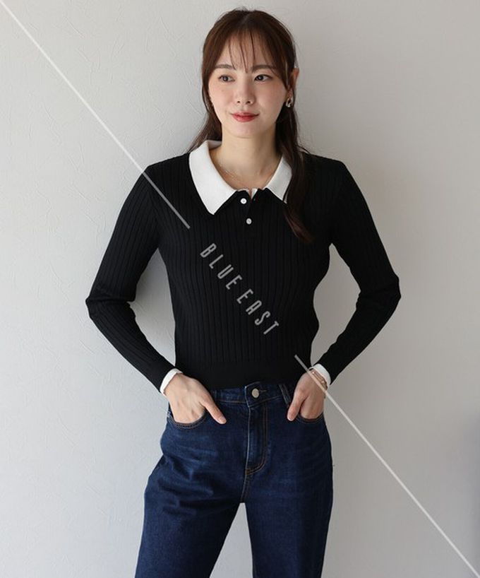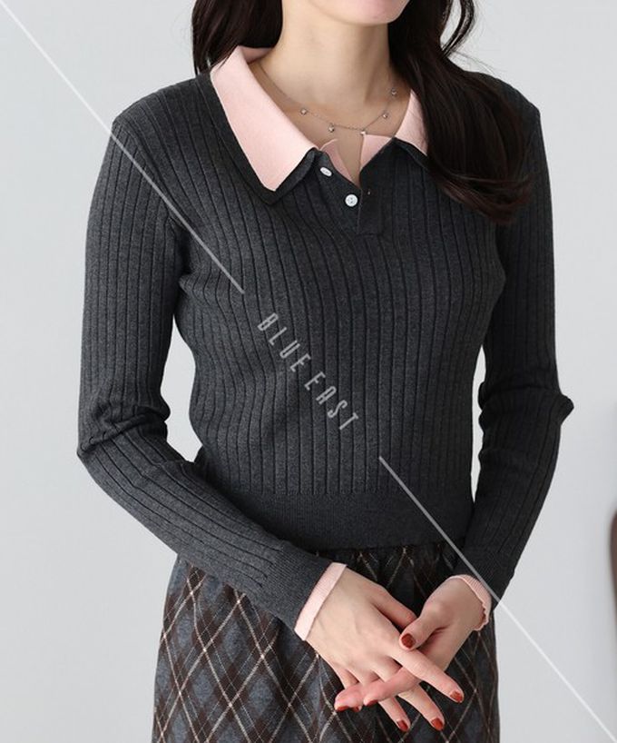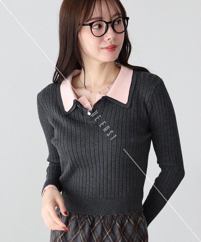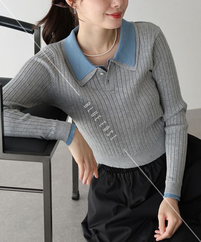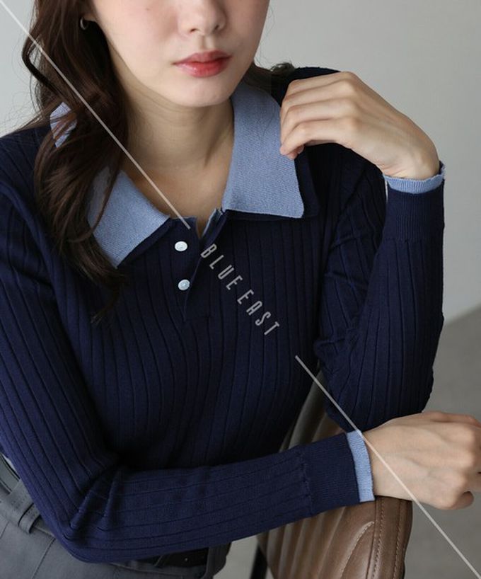 • 品名:撞色雙層領針織polo長袖上衣