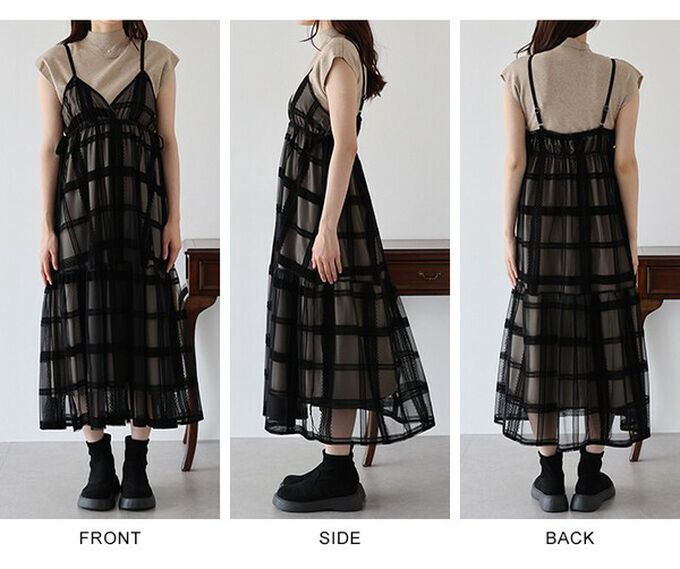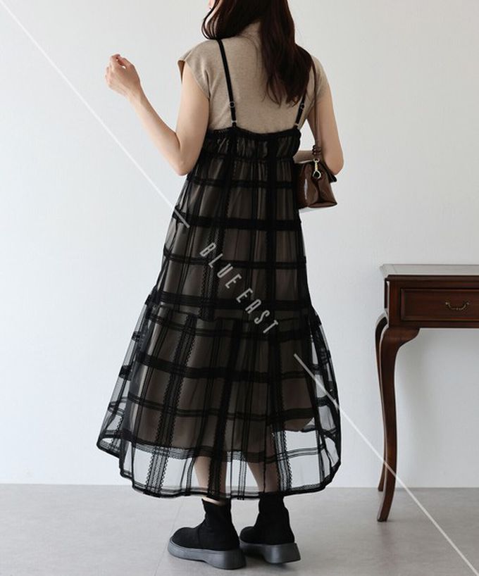 • 品名:甜美植絨大格紋吊帶背心洋裝