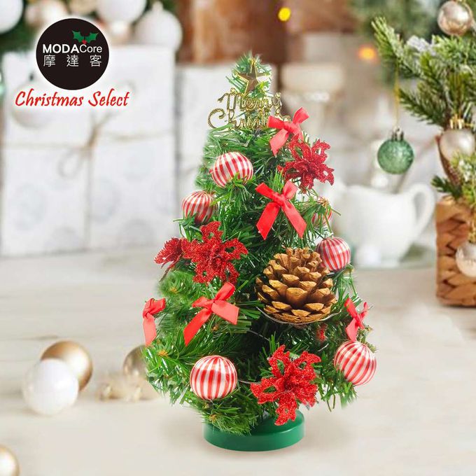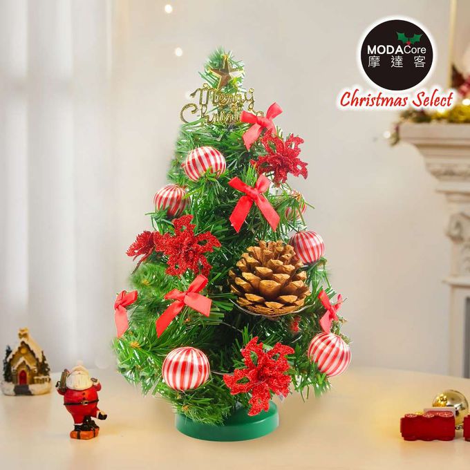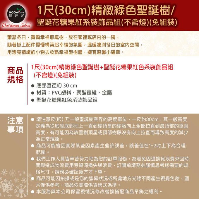 台灣製1尺30cm精緻綠色聖誕樹+聖誕花糖果紅系裝飾品組_免組裝_本島免運費