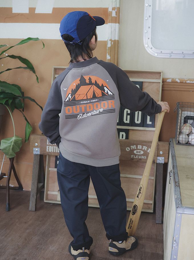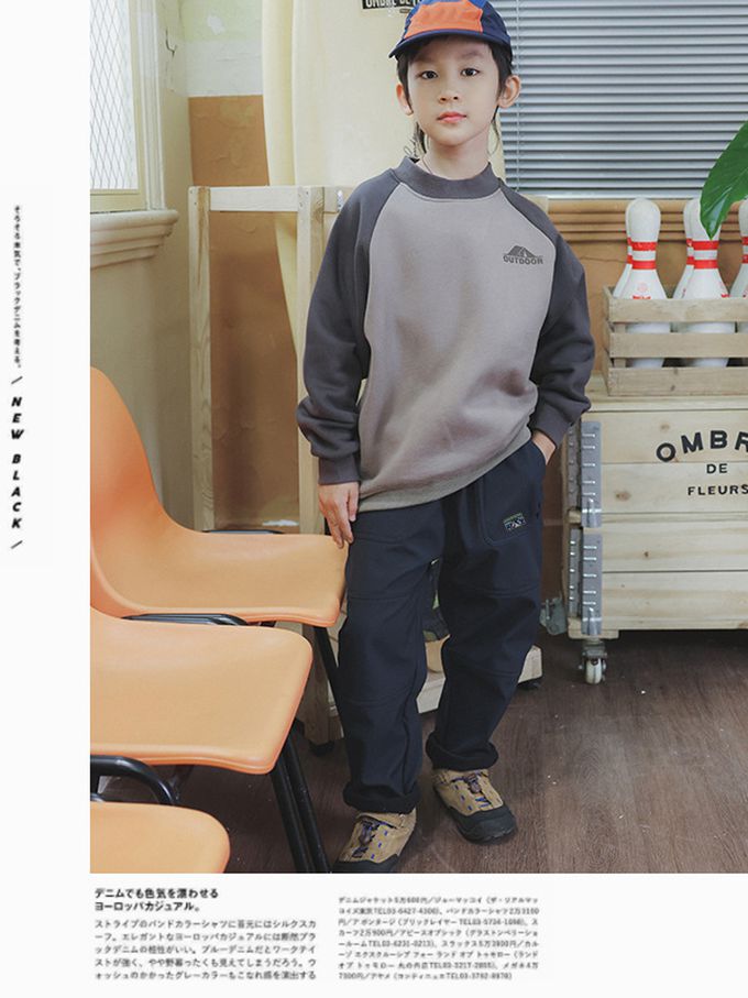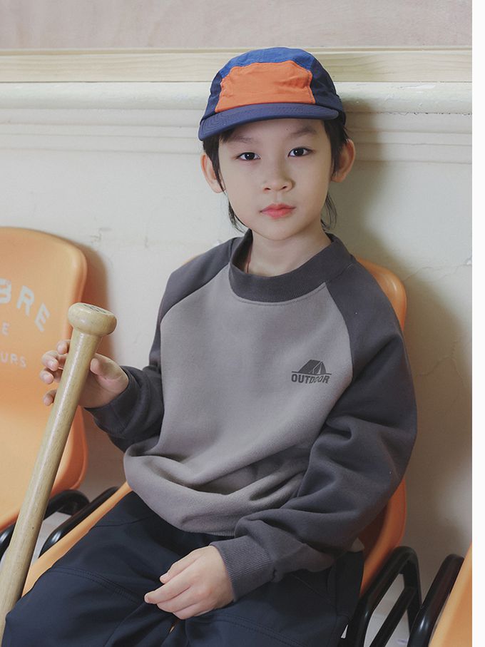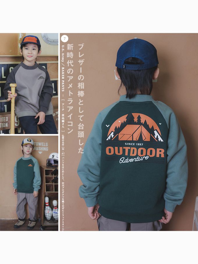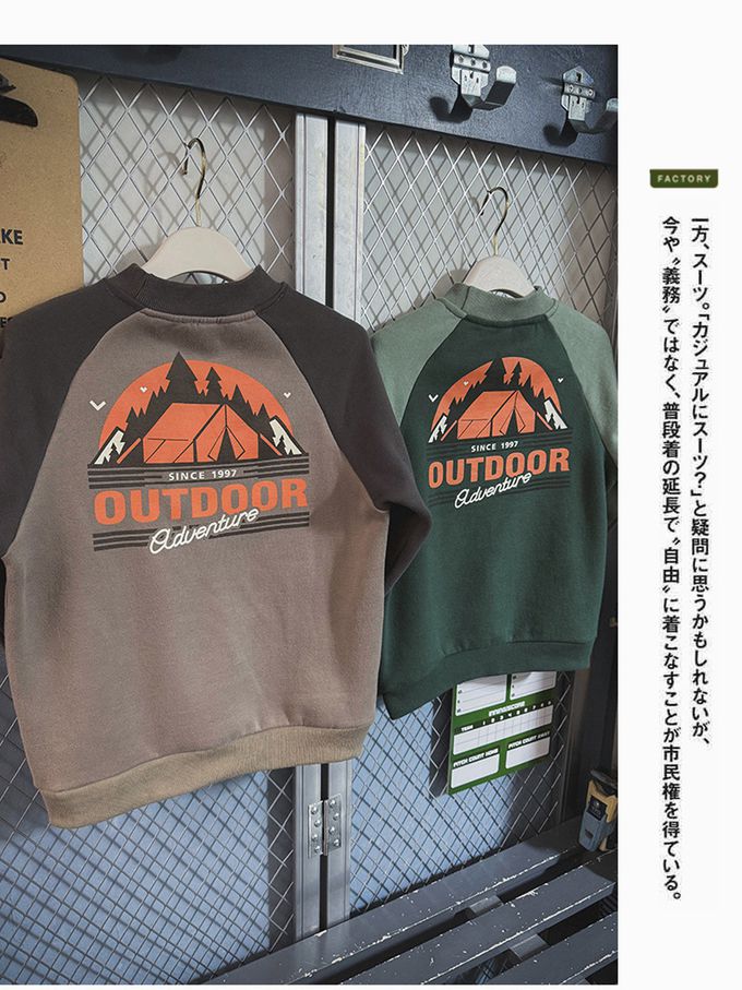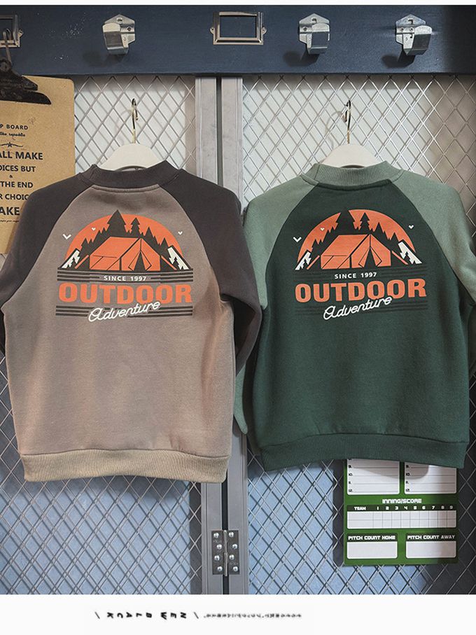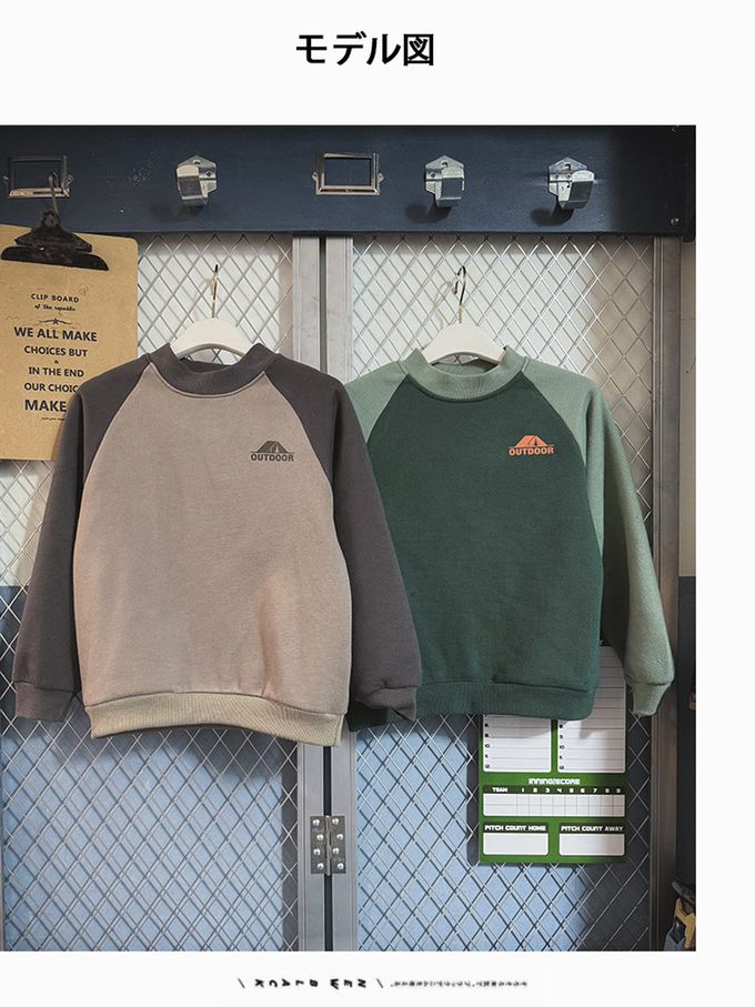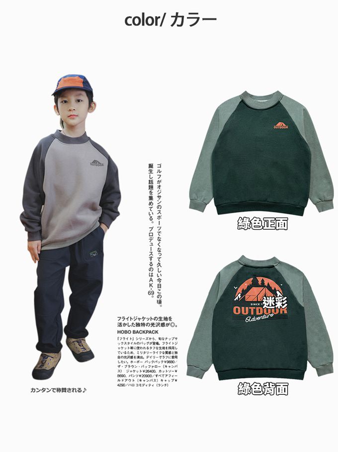 Y B S - 保暖加絨長袖上衣/大學T-OUTDOOR-拼色卡其