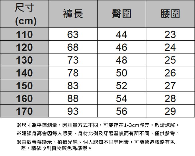 110cm、120cm、130cm、140cm、150cm、160cm、170cm