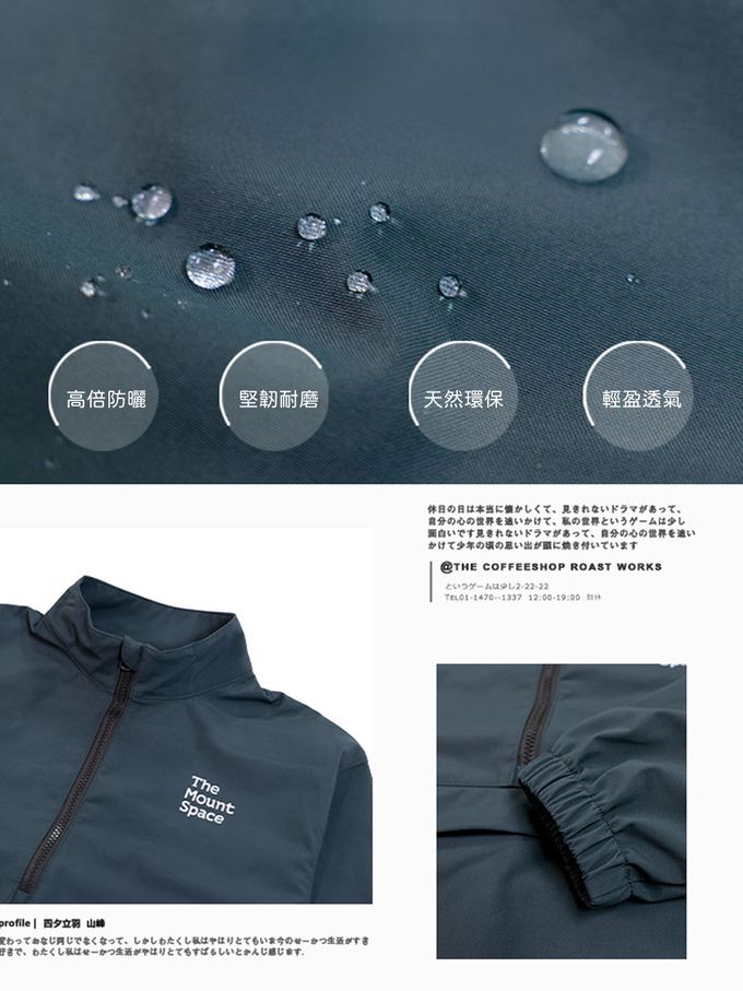 品名:防風防水半開襟長袖+長褲兩件式套裝