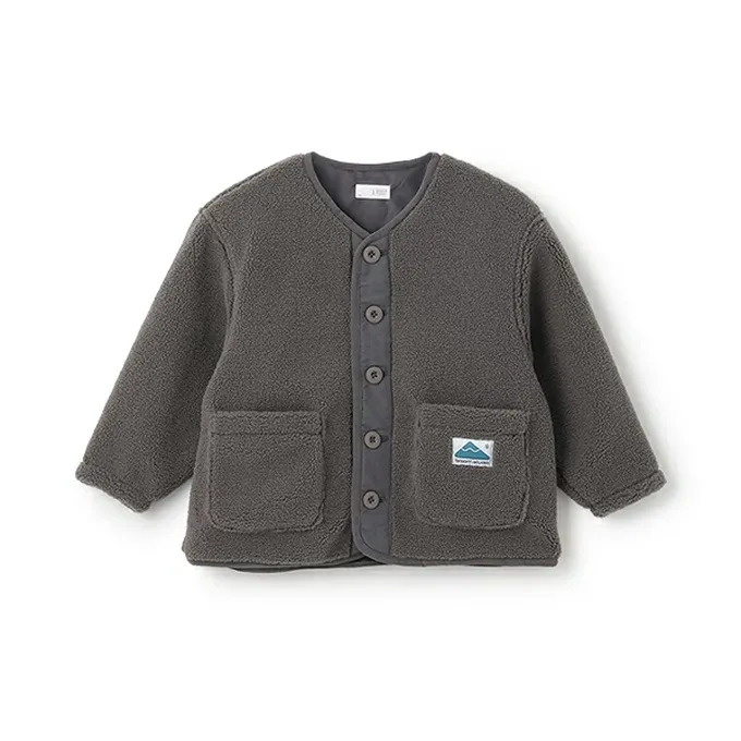 日本 b-ROOM - 可愛毛毛口袋布勞森保暖外套-炭灰