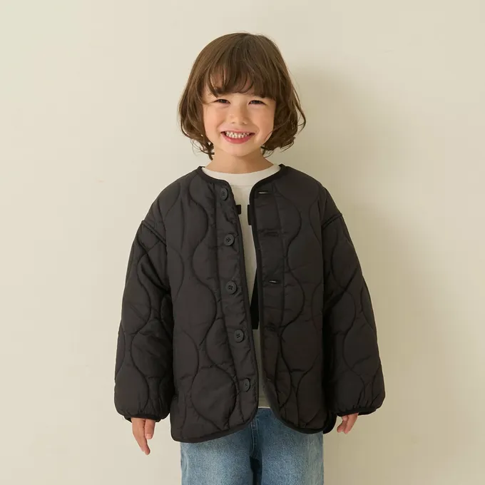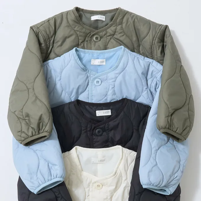日本 b-ROOM - 輕便無領絎縫保暖外套-黑