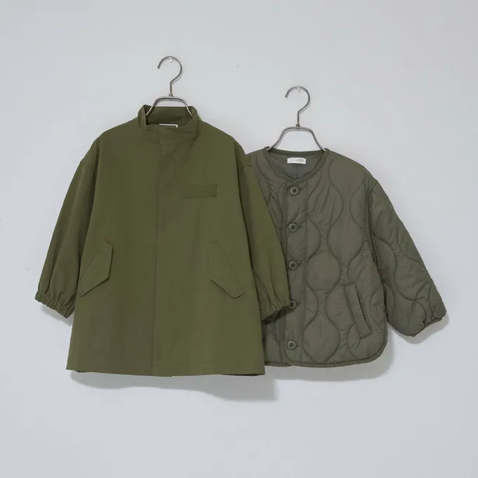 日本 b-ROOM - 輕便無領絎縫保暖外套-軍綠
